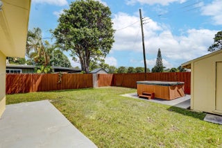 3 Bed 2 bath Single Family Home. Unincorporated PBC. NO HOA. Carport parking on end of private road. Only 3 homes on Hartwick Lane. Open floorplan. Large Master Bedroom and bath. Very updated home. Family room can be used for bedroom with Mini Split Ac unit and laundry sink. Separate laundry room with french doors leading to private backyard. Detached large storage shed. Large second bedroom and hall bath. Kitchen is update with wood cabinets and granite counters. Stainless Appliance Package.