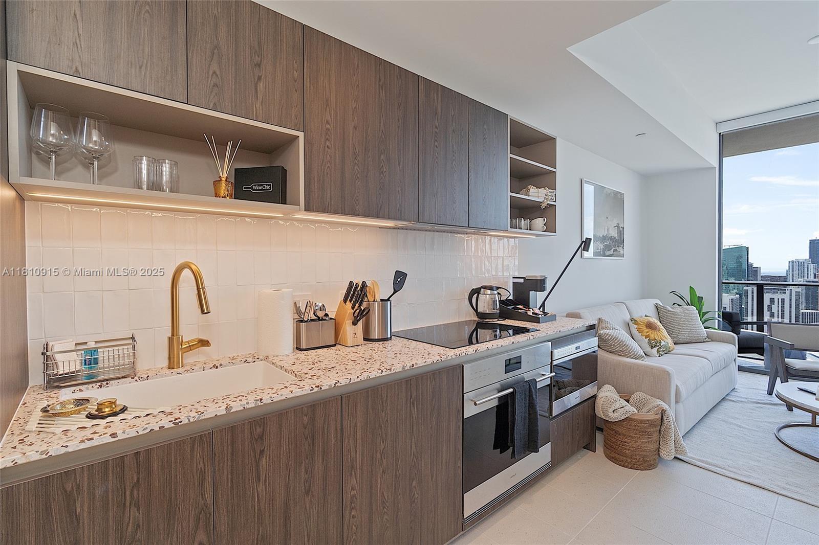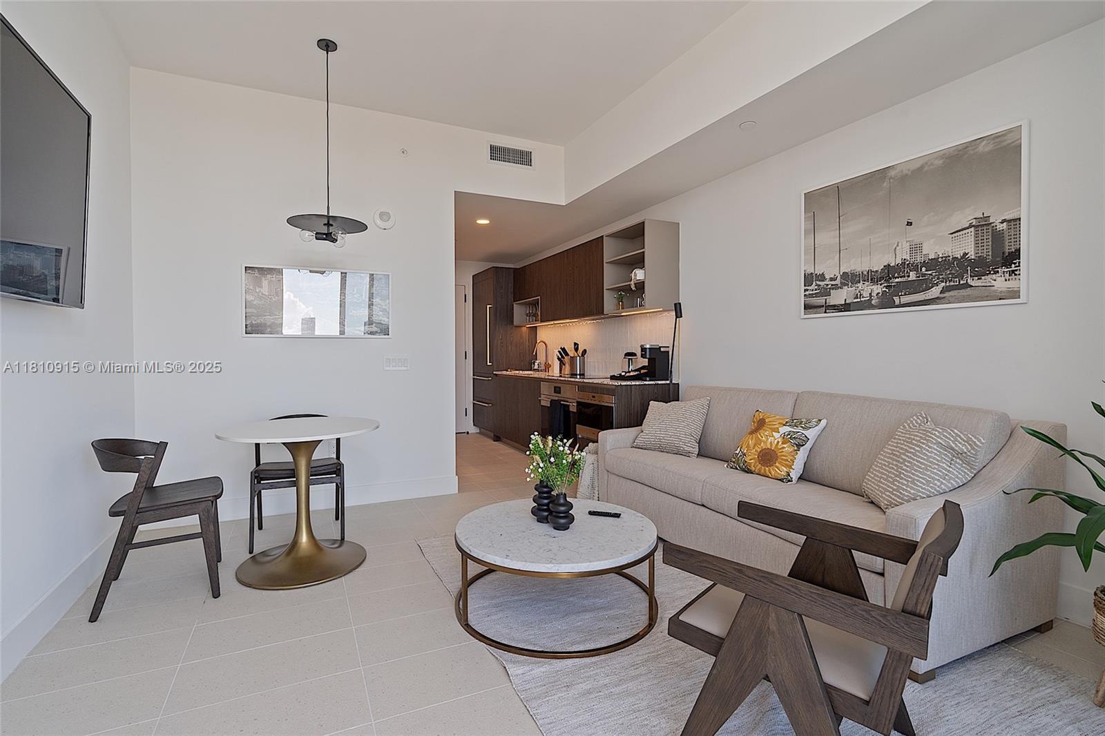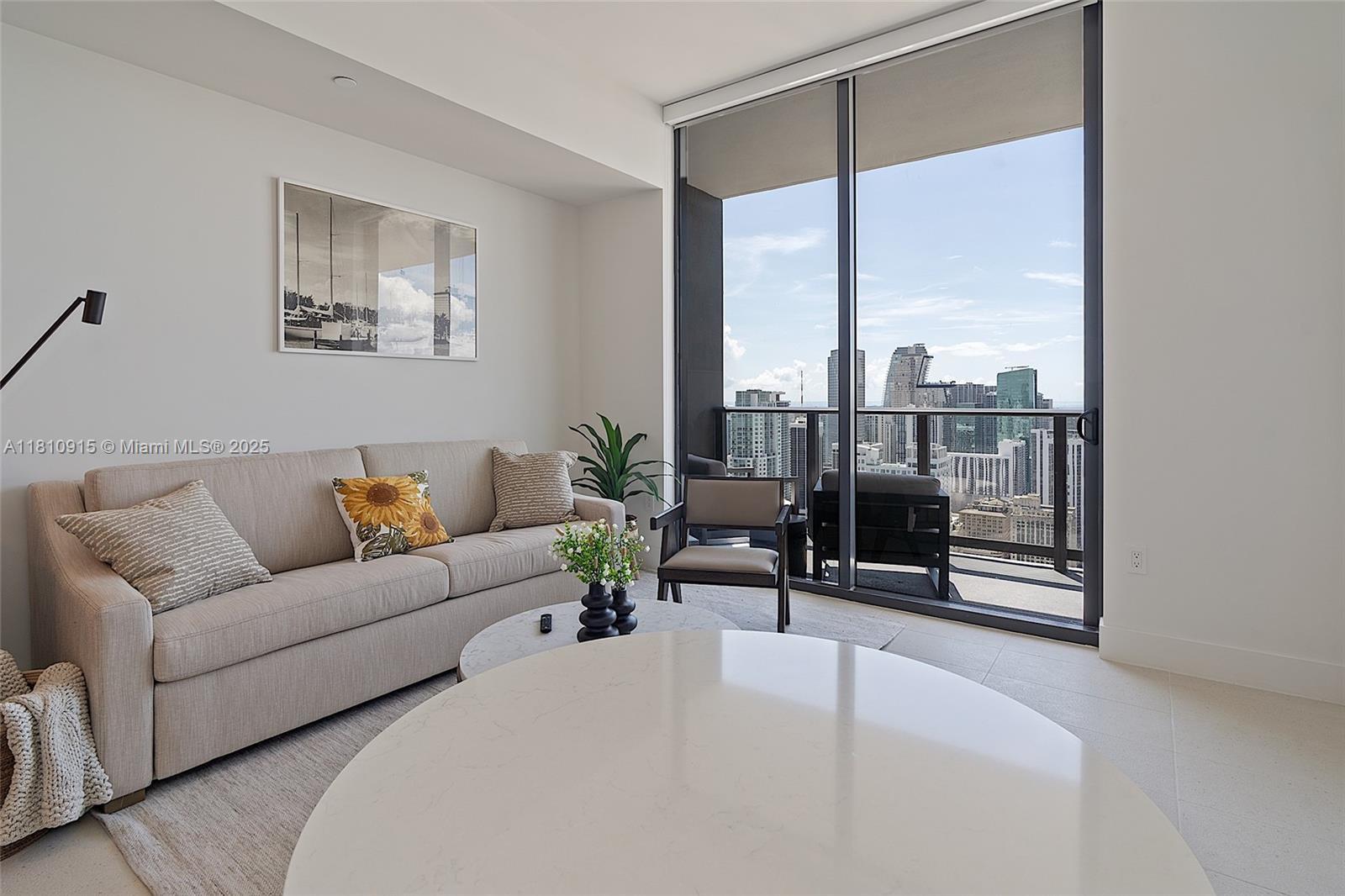 Experience elevated living in this luxurious penthouse located on the 50th floor of a brand-new high-rise in the heart of Downtown Miami. This elegant 1-bedroom unit features floor-to-ceiling windows with breathtaking panoramic views of the city skyline and Biscayne Bay. The modern open-concept layout includes a fully equipped kitchen with high-end appliances, a spacious living area with a queen sleeper sofa, and a serene bedroom with a king-size bed. Enjoy stunning sunsets and city lights from your private balcony. The building offers 5-star amenities including a resort-style pool, state-of-the-art gym, spa, and restaurants. Perfect for couples or business travelers seeking style, comfort, and location. Daily, Weekly, Monthly rent available.