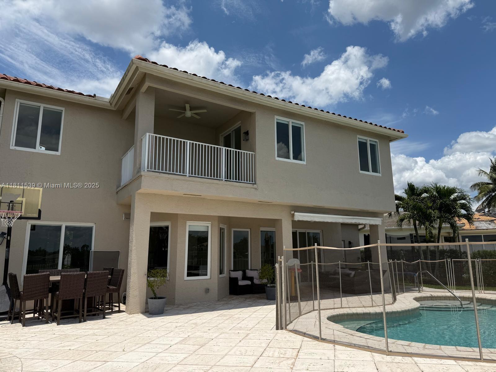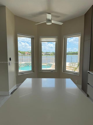 Amazing lakefront view from this beautiful two story home complete renovated with five bedrooms and four full renovated baths. This home is located in the gated community of The Island on a pie shape lot with lots of room to entertain friends and family. Sparkling pool with jacuzzi on the backyard and the most stunning views of the lake from the master suite and balcony. New roof, New and renovated kitchen, New impact windows, electric curtains, wine cooler, walk in pantry. Four bedrooms and three bathrooms upstairs and a fifth bedroom currently used as an office and full cabana bath downstairs.