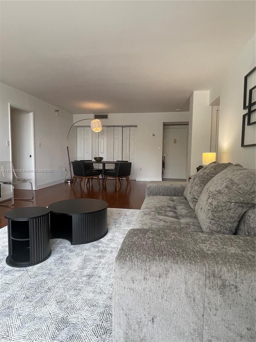 Stylish and spacious furnished condo (2/2) featuring an open floor plan, elegant parquet wood flooring, and a private balcony. The primary bedroom includes a convenient built-in desk. The building has undergone a full renovation, with an updated lobby, refreshed hallways, and new entry doors for each unit. Conveniently located in the heart of Aventura, this residence in close To Aventura Mall, Publix, Whole Foods, fine dining, LA Fitness center, golf course, and gorgeous beaches. Community amenities include a gym room and a BBQ area for residents.