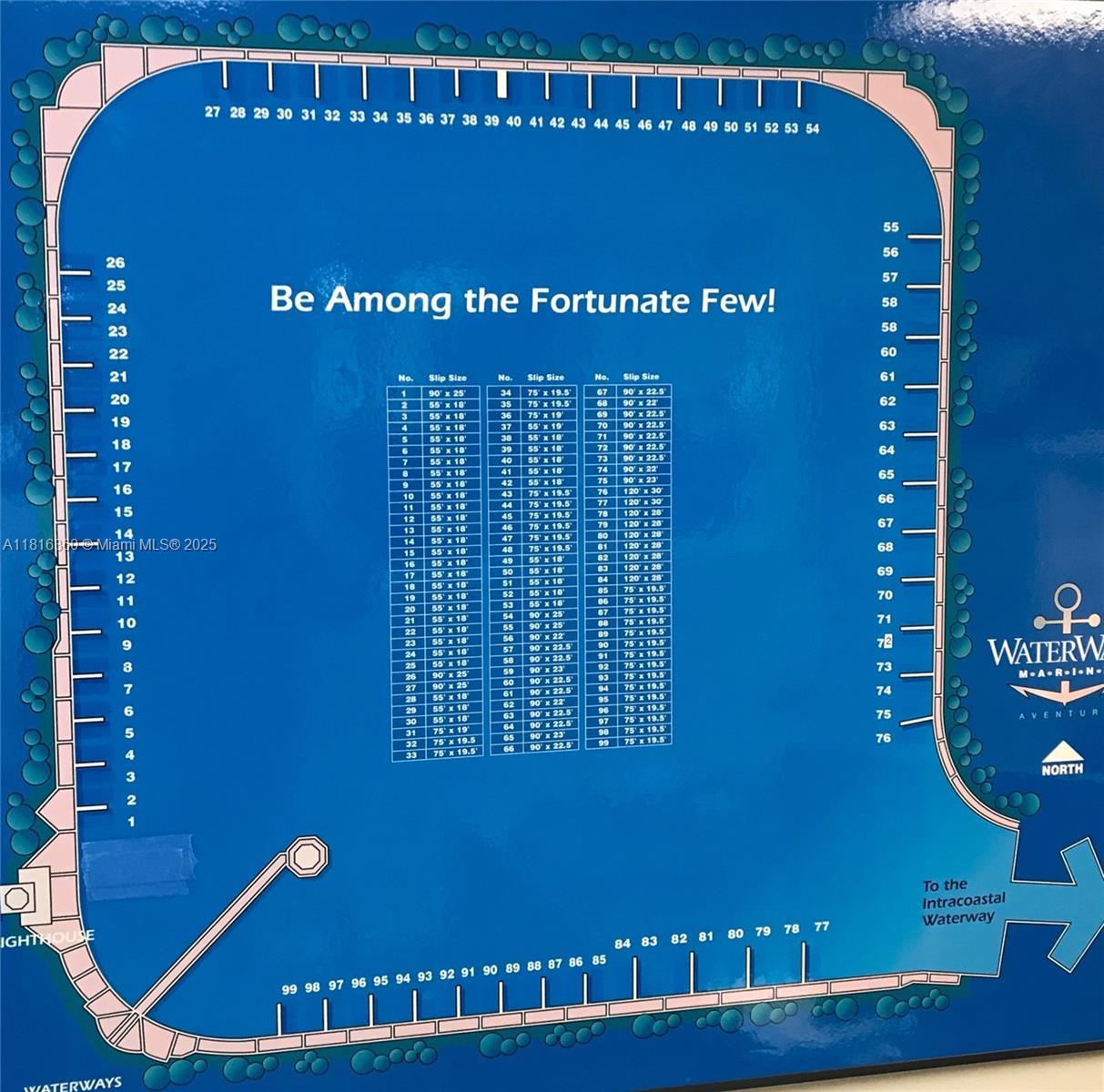 Located in the amazing Waterways Marina in Miami's upscale Aventura neighborhood. This slip gives you unlimited can access with deeded slip measuring 55' by 18'. The finger dock depth is 8 feet at lhigh tide, 6 feet at low tide. The channel entrance depth is 35 feet and there is no fixed bridges. The gated marina has shops, restaurants, security, post office. Available ervices include, electrical, 1 30 amp & 1 50 amp, and water. Parking, Wi-Fi, pump out and guest pickup & drop off included. Incredible property with no condo restrictions for ownership.Don’t miss this rare opportunity to own a premium deeded boat slip located in a protected marina just minutes from open water. Perfect for boaters who value convenience, security, and accessibility.