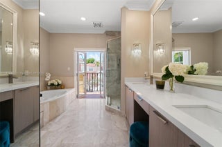 Welcome to this stunning, fully remodeled townhome located in the highly sought-after community of Aventura Bay. This spacious 3-bedroom, 2.5-bath home offers a perfect blend of luxury and comfort. The first floor features a custom kitchen with a large peninsula, top-of-the-line appliances, large pantry, and a stylish half bath. The open living, dining, and family rooms flow seamlessly into a private backyard complete with a lush wall garden and built-in heated spa. Upstairs, you'll find an oversized primary suite with a walk-in closet, Juliet balconies, dual sinks, a separate Jacuzzi tub and shower. Additional highlights include two nice sized bedrooms that share a Jack & Jill bathroom. Enjoy the amenities of this gated community with a pool, gym, the best schools.