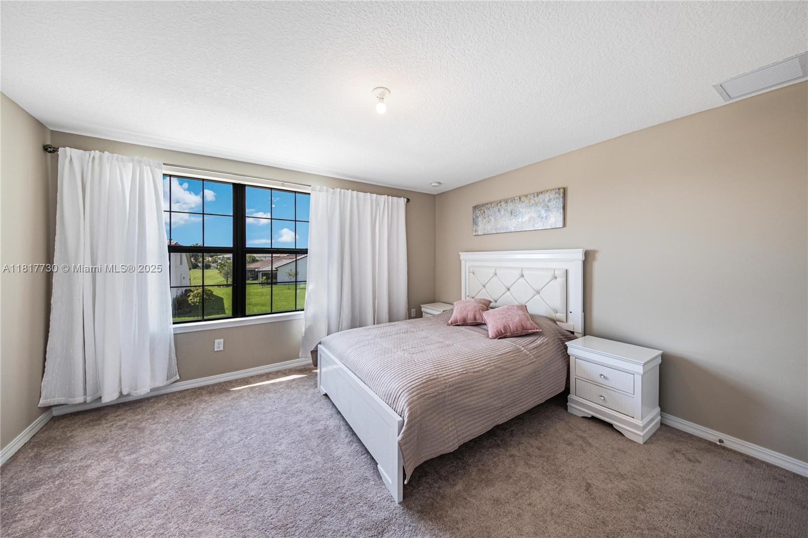 Golfer’s dream home! Welcome to one of the most spacious homes in the Enclaves at Woodmont! This furnished 5 Beds/3 Baths upgraded model offers 2,860 SQ FT with an open layout, quartz kitchen countertops, custom cabinets, new appliances & large island with a bar. Primary suite + extra bedroom on the main floor; 3 beds + loft upstairs. Impact windows, blinds, walk-in closets & plenty of storage. Covered patio overlooks lush golf course & lake views with room to build your dream pool! HOA includes landscaping, security & Country Club. Resort-style amenities: GYM, basketball, tennis, pickleball, golf, pool, theater & restaurant. Only 25 mins to FLL airport, 15–20 mins to beaches & Sawgrass Mills Mall for luxury shopping & dining. Built in 2022 by PULTE Homes — modern, elegant & move-in ready!