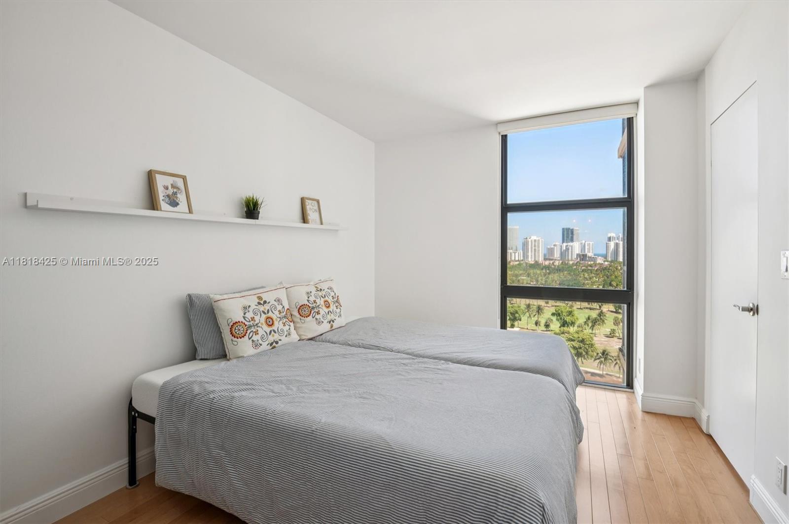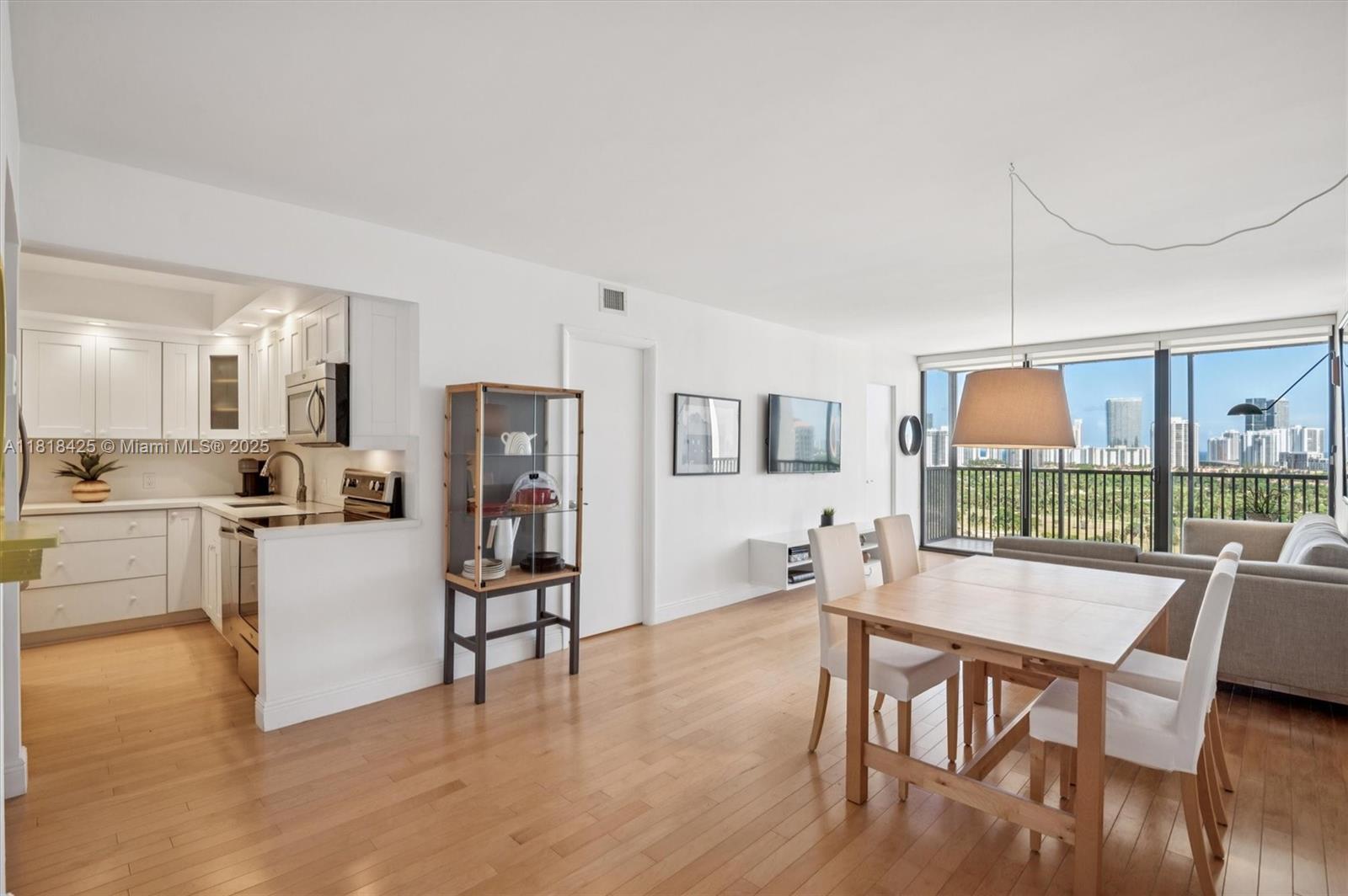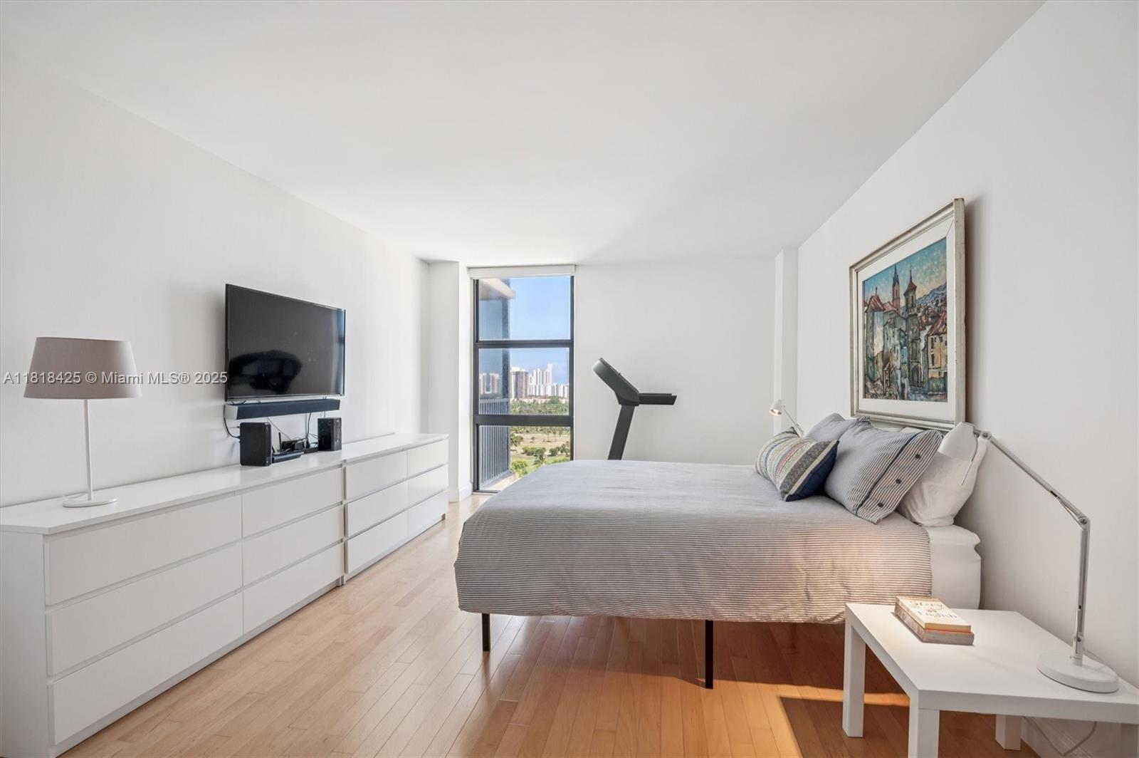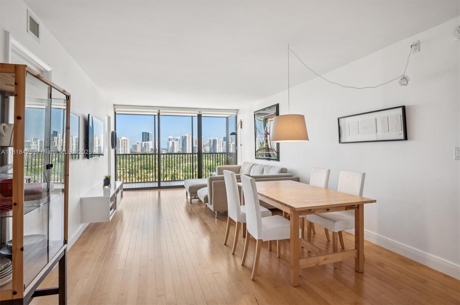 Welcome to this beautiful 2/2 split bedroom corner unit, where breathtaking views of the golf course, ocean, and skyline await! This stunning, totally renovated property boasts elegant wood floors, smooth ceilings creating an inviting atmosphere. The kitchen feature sleek white wood cabinetry & SS appliances, perfect for culinary enthusiasts & entertaining guests. The master bath has a glass enclosed shower and a spacious ensuite dressing area with custom built in closets. Enjoy the beauty of the city lights from your living space, with panoramic vistas that will leave you in awe. This exceptional property is move in ready! Assigned covered parking, pool, jacuzzi, sauna, fitness center, 24 hour security gate, shuttle service & ADA/ESA animals permitted. Building passed 40yr certification