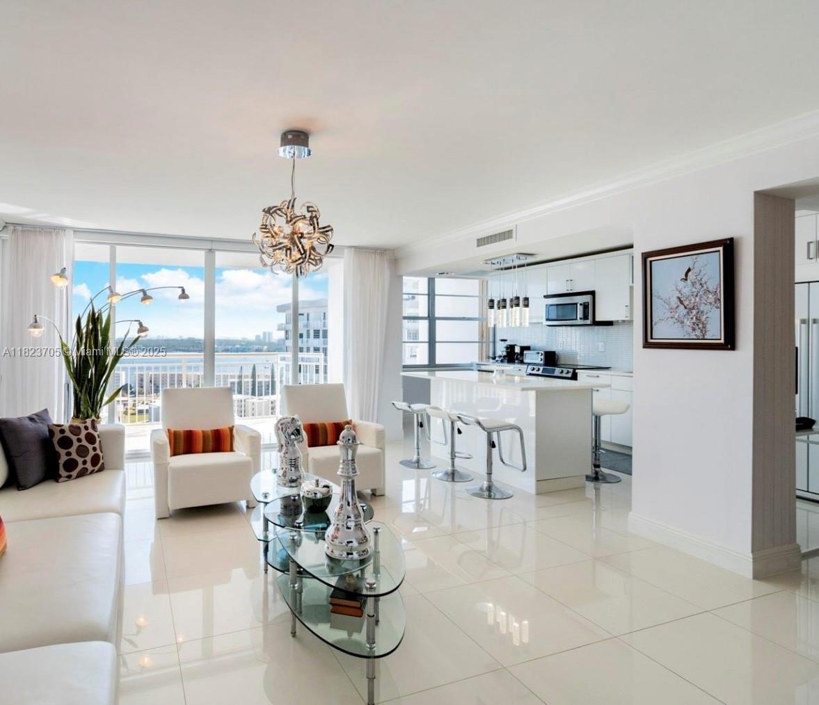 Amazing and spacious apartment in Del Prado on the Bay in Aventura! This fantastic corner unit offers semi-private elevator access and breathtaking waterfront views from two balconies. Fully renovated, this spacious 2 bed/2 bath