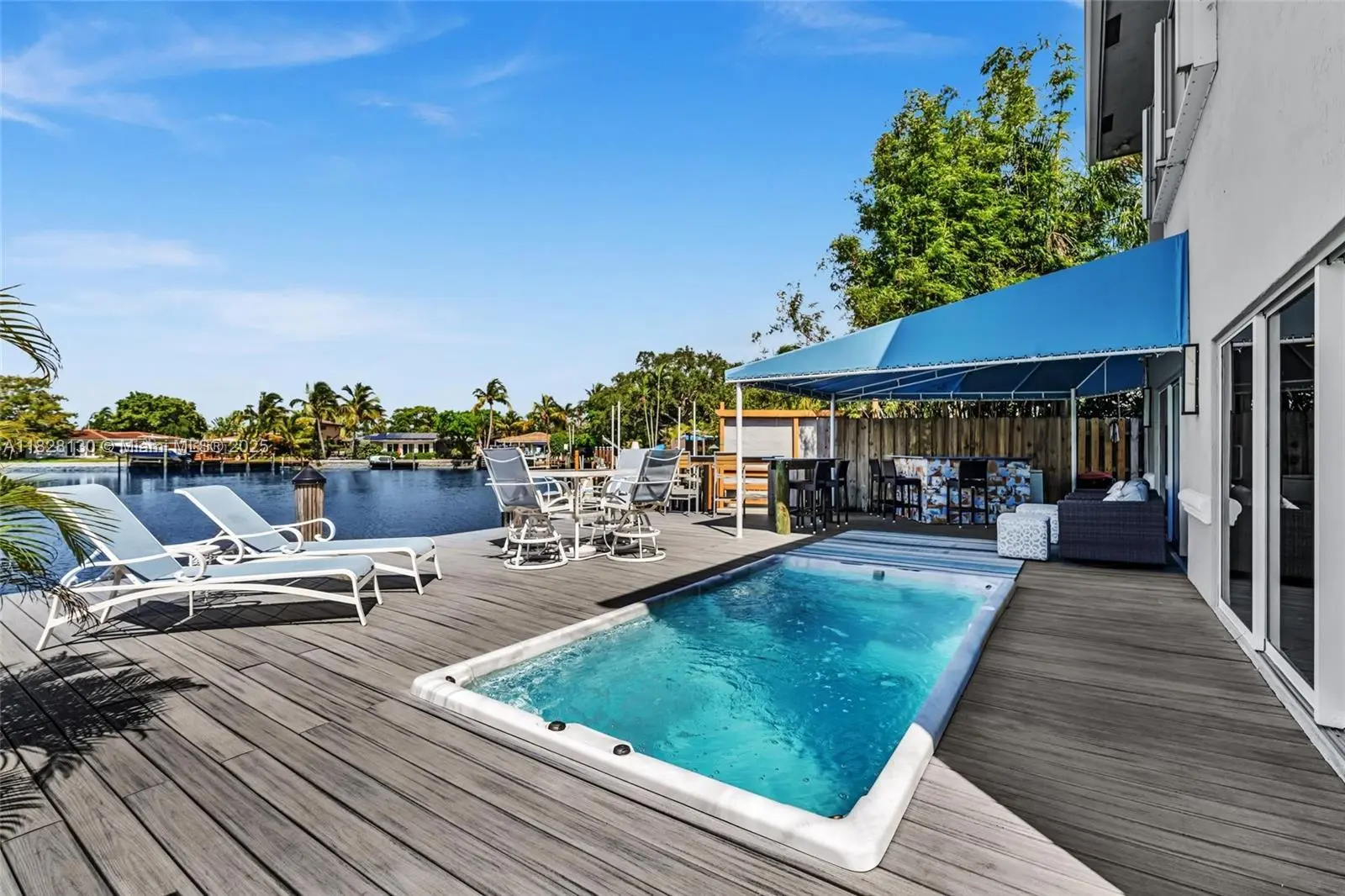 Home for entertaining. Ocean access. Dock available. View is lake; not canal. Faces west for ultimate sunsets. 2 sets of sliding doors open to pool and outdoor bar/deck. Zero scape: Indigenous and exotic plants/trees. No grass to mow. parking in 3 car driveway plus 2.5 car garage; new epoxy floor. Street is double cul de sac. 2nd floor is master suite w private balcony. 1st floor can be mother-in-law or private guest suite. separate entrance. 2 newly remodeled bathrooms and new granitzite counters in kitchen. Large laundry and new master closet with attic access for optimum storage. Energy efficient; 5 min from everything.