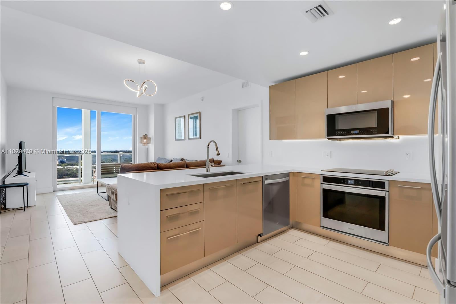 Live the High-Life Above It All— Luxury 2-bedroom, 2-bath condo on the 14th floor with panoramic skyline views and floor-to-ceiling impact windows. This move-in-ready home features a sleek open floor plan, modern kitchen with quartz countertops, Italian cabinetry, and stainless steel appliances. Both bedrooms offer walk-in closets and spa-inspired bathrooms, creating the perfect retreat. Enjoy in-unit laundry and two covered garage spaces. Metropica’s resort-style amenities include a saltwater pool, Technogym fitness center, tennis courts, spa, sauna, theater, kids’ club, and BBQ area. Walk to Sawgrass Mills, dining, and entertainment. Zoned for A-rated schools, near parks, and the arena.