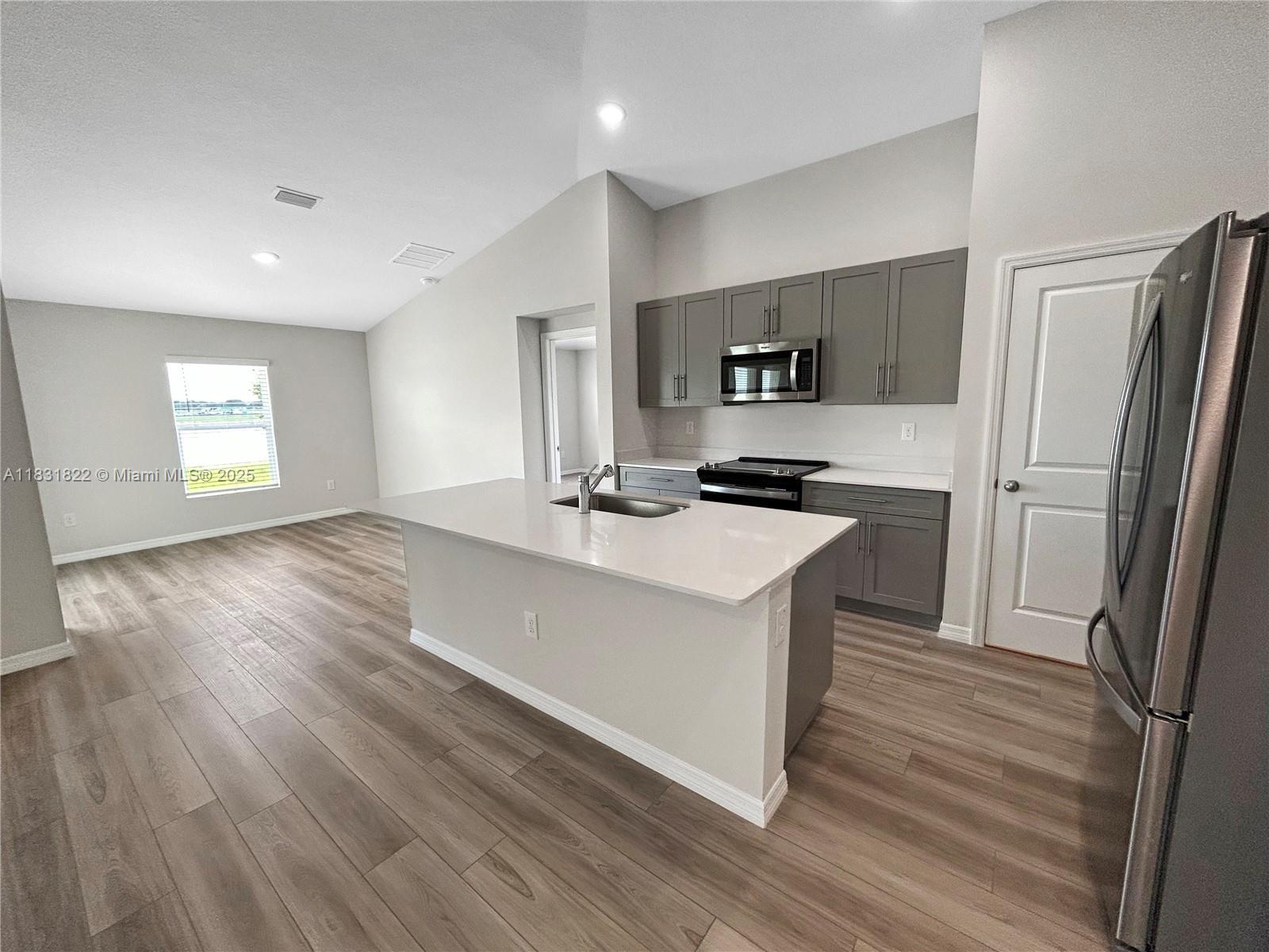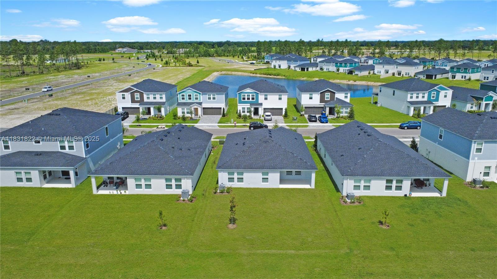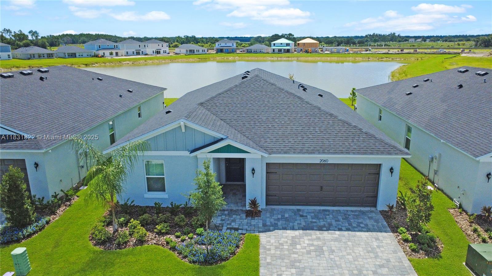 PRICE REDUCED! Welcome to this beautiful brand new 3 bedroom, 2 bathroom lakefront home in the new "Two Rivers" community in Zephyrhills. This one-story residence features a modern open floor plan with high vaulted ceilings, luxury vinyl plank flooring, and a stunning kitchen with quartz countertops, stainless steel appliances, and 42" shaker cabinets. The spacious primary suite overlooks the lake and includes a walk-in closet and a double-sink vanity. Enjoy peaceful water views from your covered lanai and backyard. Includes a full-size laundry room with full size washer & dryer. Located minutes from shopping, dining, parks, trails, and top-rated schools. Don’t miss the chance to live in a growing community that will offer beautiful amenities and tons of natural surroundings!