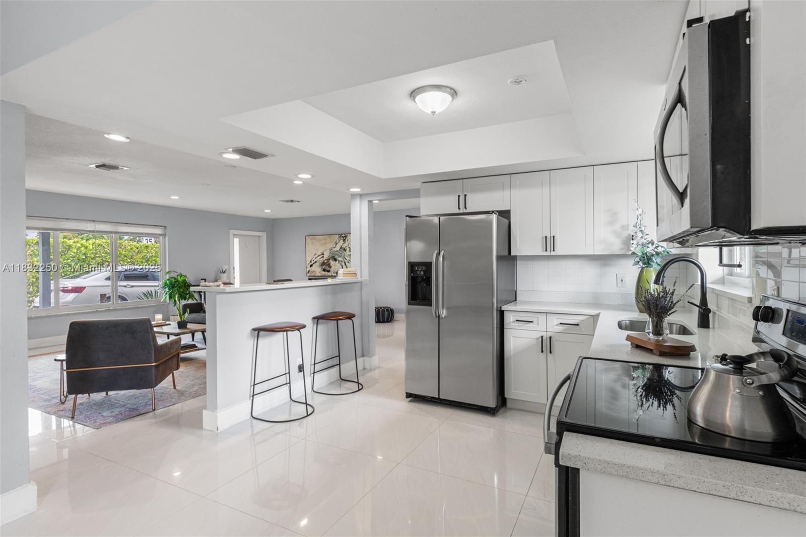 Fully renovated 4 bed, 3 bath home in corner lot in Wilton Manors. Spacious and bright! 36' x 36' tile throughout. Great for entertaining, with formal and informal dining spaces. Glass enclosed showers in bathrooms. Recessed LED lighting in living room and kitchen bar. All impact windows throughout. The fourth bedroom can be used as an office or den with private street entrance off the kitchen, and 3rd bathroom in the 2-car garage. Beautiful outdoor living space with yard, built-in grill in outside patio, with plenty of additional space for entertaining. Home is great for an investor who wants to transform to a stylish income earning duplex with 2 separate entrances and ample parking including 2 car garage!