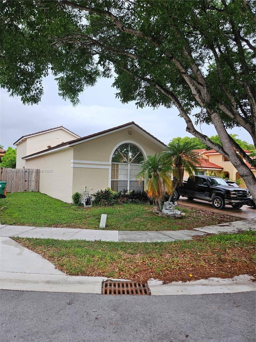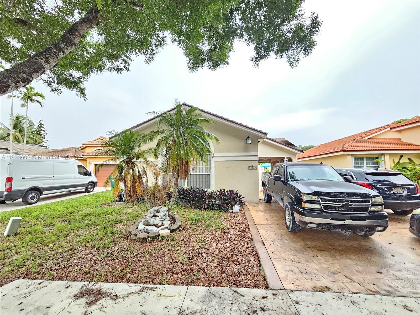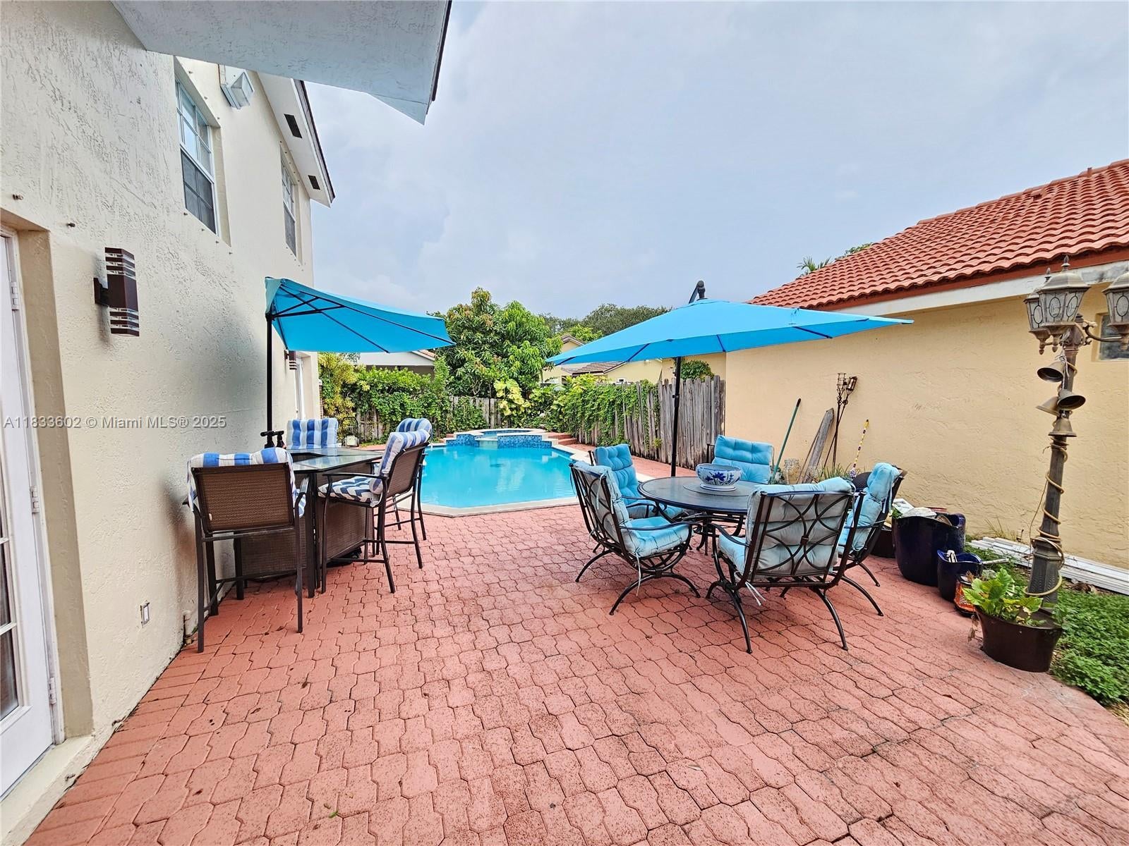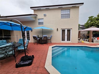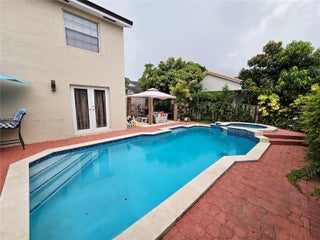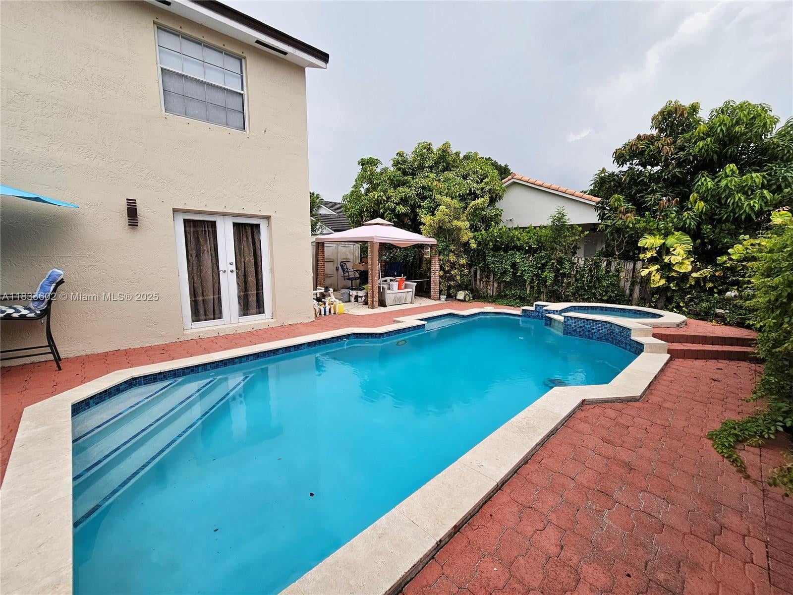 PRICE IMPROVED! Beautiful 3/2.5 single-family home with a pool in Miami Lakes. This spotless and upgraded home features a 4-year-old roof and is located in a cul-de-sac, offering extra privacy and minimal traffic. The master bedroom is conveniently located downstairs. Enjoy a spacious pool area with a hot tub and pool heater, perfect for gatherings. The home is filled with natural light from several skylights and boasts high ceilings. The fully renovated open kitchen includes new large countertops and stainless-steel appliances. Tile floors cover the first floor, while the second floor features wood flooring. An extended driveway accommodates over four cars. No association fees!