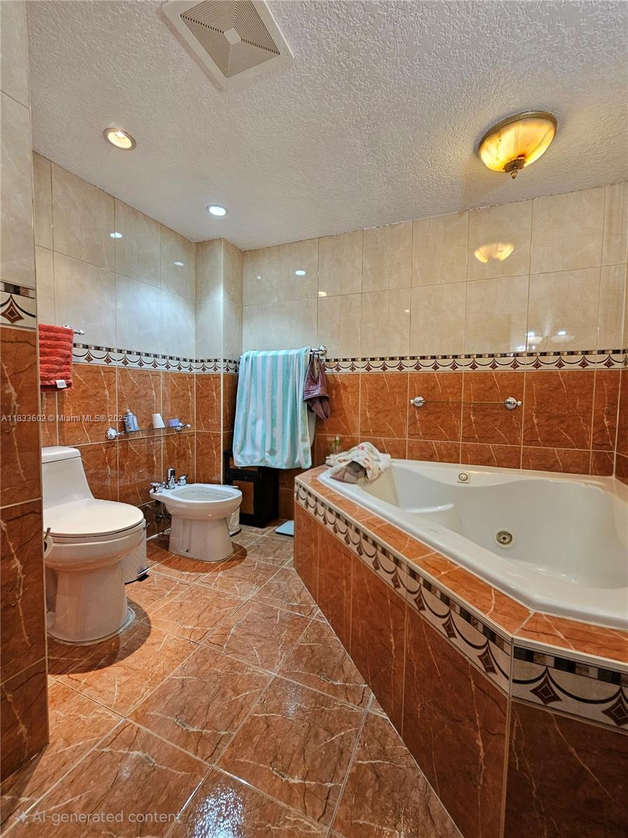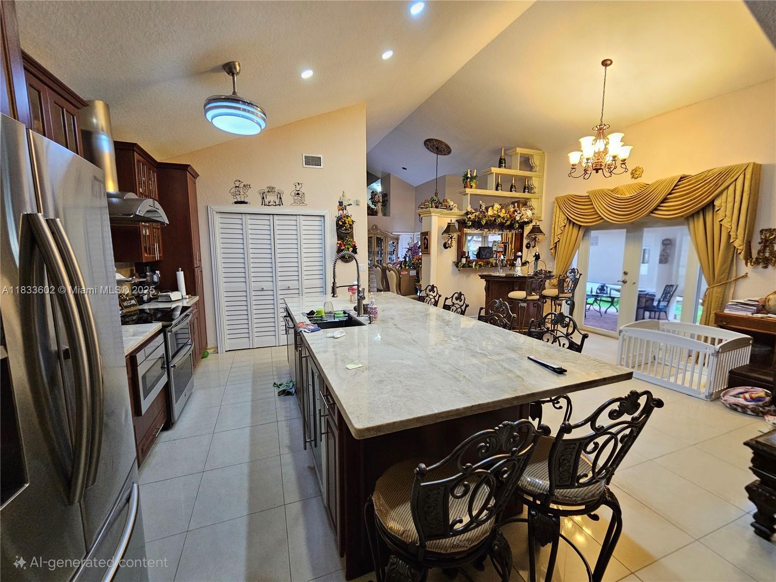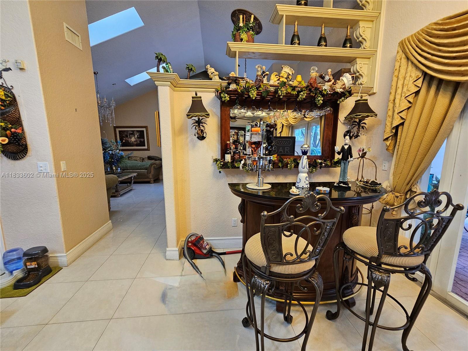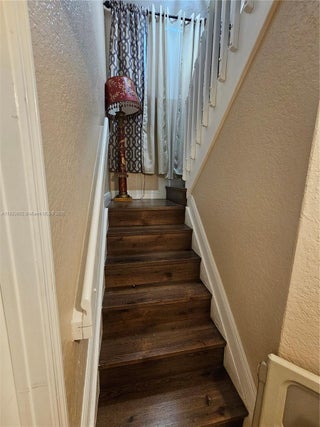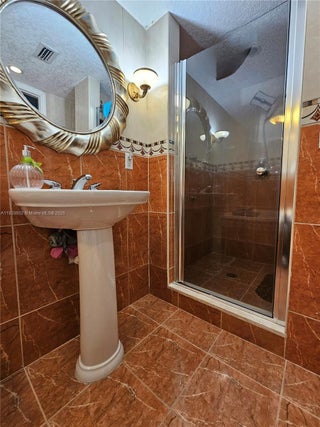 PRICE IMPROVED! Beautiful 3/2.5 single-family home with a pool in Miami Lakes. This spotless and upgraded home features a 4-year-old roof and is located in a cul-de-sac, offering extra privacy and minimal traffic. The master bedroom is conveniently located downstairs. Enjoy a spacious pool area with a hot tub and pool heater, perfect for gatherings. The home is filled with natural light from several skylights and boasts high ceilings. The fully renovated open kitchen includes new large countertops and stainless-steel appliances. Tile floors cover the first floor, while the second floor features wood flooring. An extended driveway accommodates over four cars. No association fees!