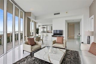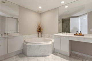 Amazing unit with 12 foot ceilings! This three bedroom, three bath unit has a large wrap around balcony with water, bay, club, and garden views. Kitchen has Miele appliances and Subzero refrigerator. Primary bedroom has a walk in plus a line closet and large bathroom with jacuzzi tub and walk in shower and dual sinks. Laundry room is equipped with a convenience sink. Tastefully furnished, this was a model unit for the developer. The main clubhouse is very close and the second clubhouse is across the building. Williams Island amenities galore, 15 tennis courts, 4 pickleball courts, 3 restaurants, renovated spa, marinas, courtesy bus, walking path, kids playground. Storage included. Contact management for updated membership fees.