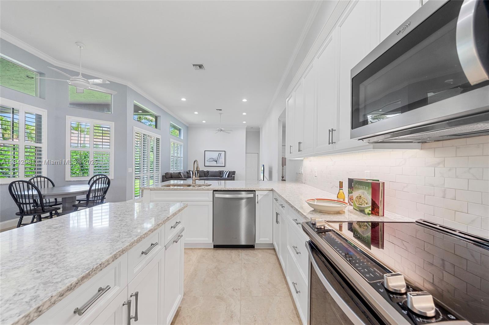 Nestled on a royal-palm cul-de-sac in gated Weston Hills Country Club, this fully renovated 4-bed and den, 3.5-bath single-story residence lives like new. A 2024 flat-tile roof, 2 new 2025 HVAC, and fresh landscaping deliver true turnkey ease. Italian tile stretches through open living areas while warm wood floors enrich each bedroom. The chef’s kitchen shines with quartz counters, stainless appliances, an island, and sleek cabinetry. All baths are updated; the primary suite spoils with a sitting area, dual walk-in closets, and a spa-inspired bath. A fully hedged backyard grants total privacy and room to design your dream pool or play space. Stroll to Hunter’s Pointe Park Weston Hills’ only soccer field, plus basketball court and playground just minutes away.