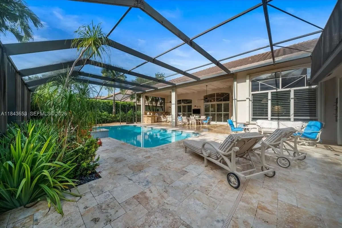 Exquisite single story estate on a .42 acre lot in The Landings w/5-beds (1 used as den/game room) 4.5-baths plus rich custom office with breathtaking ceilings. Chef’s dream kitchen showcases Wolf gas range, Sub-Zero refrigerator, enormous butcher block island, quartzite counters & apron-front sink. True indoor-outdoor living with the most impressive screened-in patio, seamlessly extending the vastness of the home. Overlooking a resort-style salt pool & spa, this expansive retreat boasts a fully equipped summer kitchen perfect for alfresco dining & entertaining. Full hurricane protection w/ accordions, 3 new A/C units, epoxy-finished garage floors, plantation shutters, custom ceiling speakers & desirable triple split-bedroom layout filled with tons of natural light. A-rated Weston Schools!