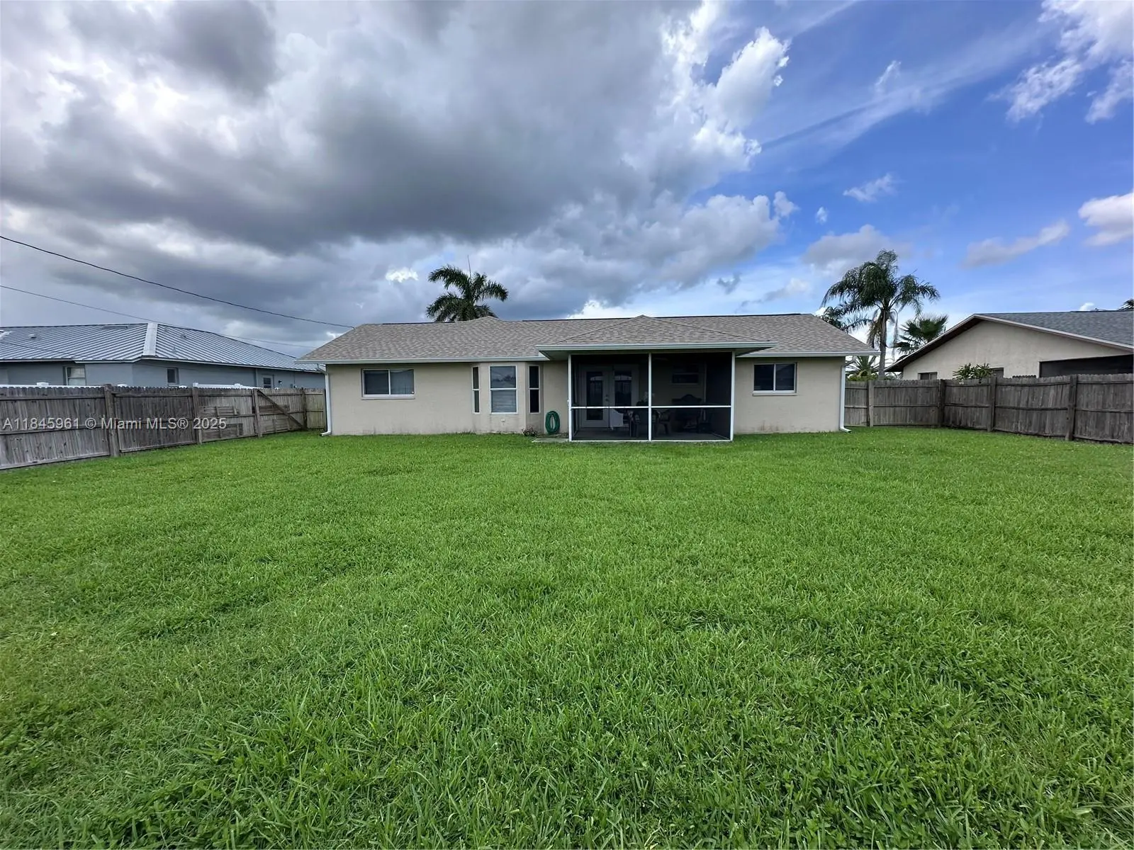 Welcome to this beautifully maintained 3-bedroom, 2-bathroom home located in a prime area of Cape Coral! Situated on a spacious lot, this move-in ready property features a two-car garage, well-manicured landscaping, and quiet neighborhood add to the appeal. Conveniently located near shopping, dining, and top-rated schools. Perfect for a primary residence, vacation home, or investment property. Don't miss this opportunity!***Dining room chandelier do not convey***