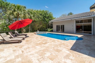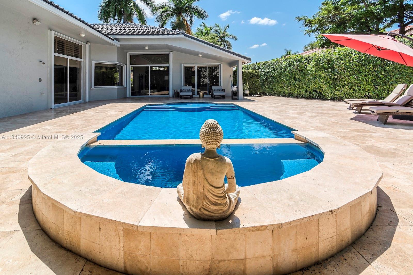 Price adjusted to sell! Nestled in the gated community of Egret Landings, this stunning 5-bedroom, 3-bathroom home sits on one of the largest lots in The Landings, offering exceptional space and privacy. Located at the end of a quiet cul-de-sac, it features a 2-car garage and a custom mahogany wet bar/pool room wired for full media enjoyment. Enjoy beautiful pool views from the formal living and dining rooms, plus a chef’s kitchen with Sub-Zero fridge, stainless steel appliances, tumbled stone backsplash, beveled granite countertops, and 42" cherry wood cabinets. The triple split floorplan ensures privacy throughout. Roof was completely replaced in 2021, offering peace of mind and long-term value. Covered patio and outdoor shower make this home the perfect blend of luxury and comfort.