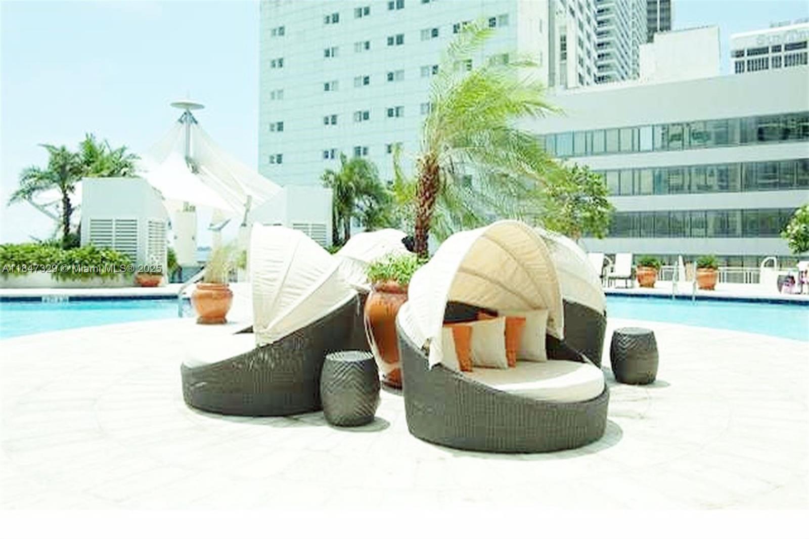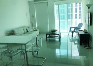 1 bed/1 bath Unit with balcony at Vizcayne South. Features tile with floor-to-ceiling impact glass windows. The kitchen is equipped with stainless steel appliances, cabinets, and granite countertops. Bathroom includes a shower and separate bathtub. Comes with 1 assigned covered parking space and 1 storage unit. New Air Conditioning installed. Amenities including 24/7 concierge services, swimming pools, a modern fitness center, spa facilities, billiard room, security, etc. Unit partially furnished.