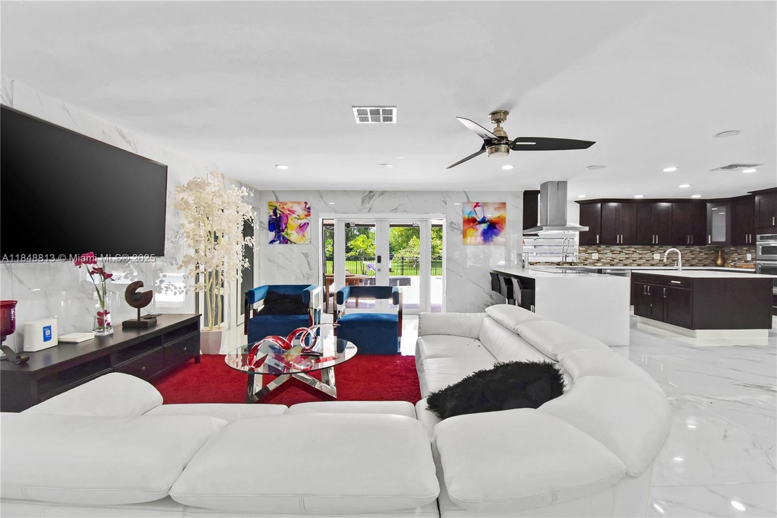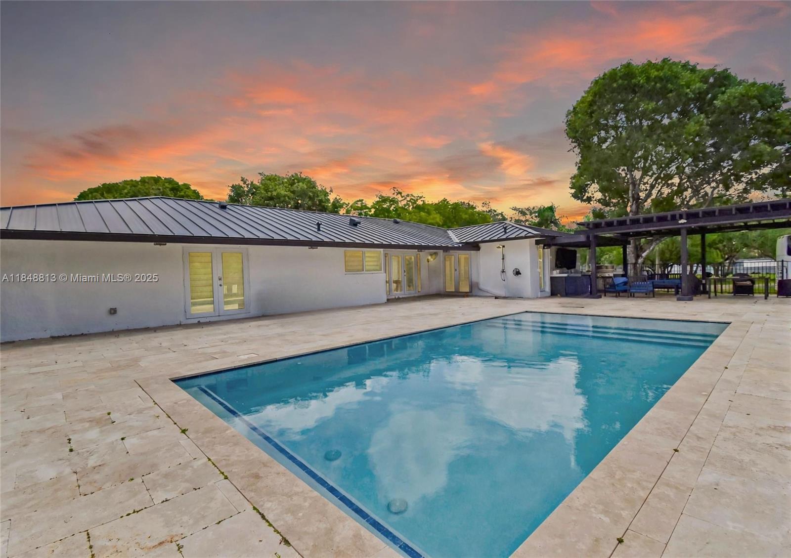 Modern Masterpiece on 2.04 Acres in Southwest Ranches! Privately nestled at the end of a cul-de-sac surrounded by mature trees and fully fenced 2.04 acres. This modern estate features 5 en-suite beds, an office, 5.5 baths, beautiful marble flooring throughout, new metal roof (2021), impact windows & doors. All beds have mini-split AC units and impact doors. The office has a full bath and can be used as a second primary bed or media room. Outside the backyard features a new saltwater pool (2022), pergola, and custom-built outdoor kitchen. This property offers remarkable flexibility: add barn, stables, guest house, or hobby farm, the possibilities are endless. NO HOA! Enjoy peaceful living in one of Southwest Ranches’ most desirable locations. Available for lease! Schedule your showing today