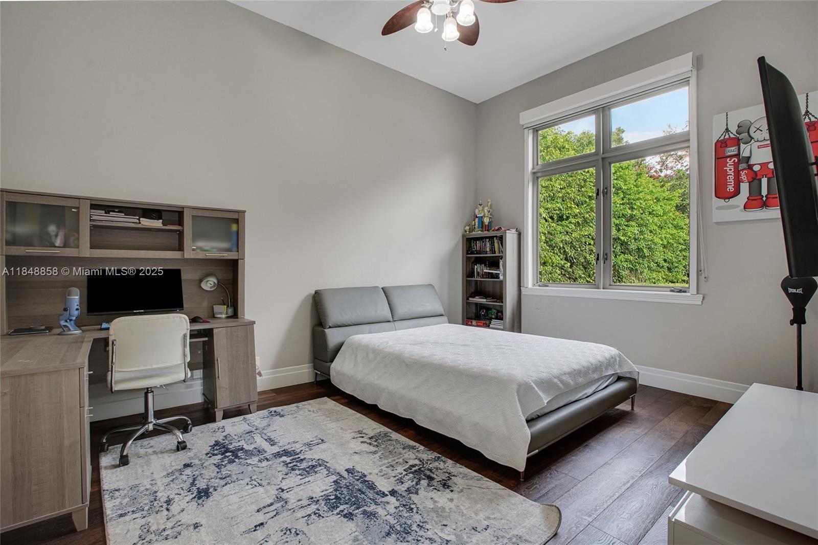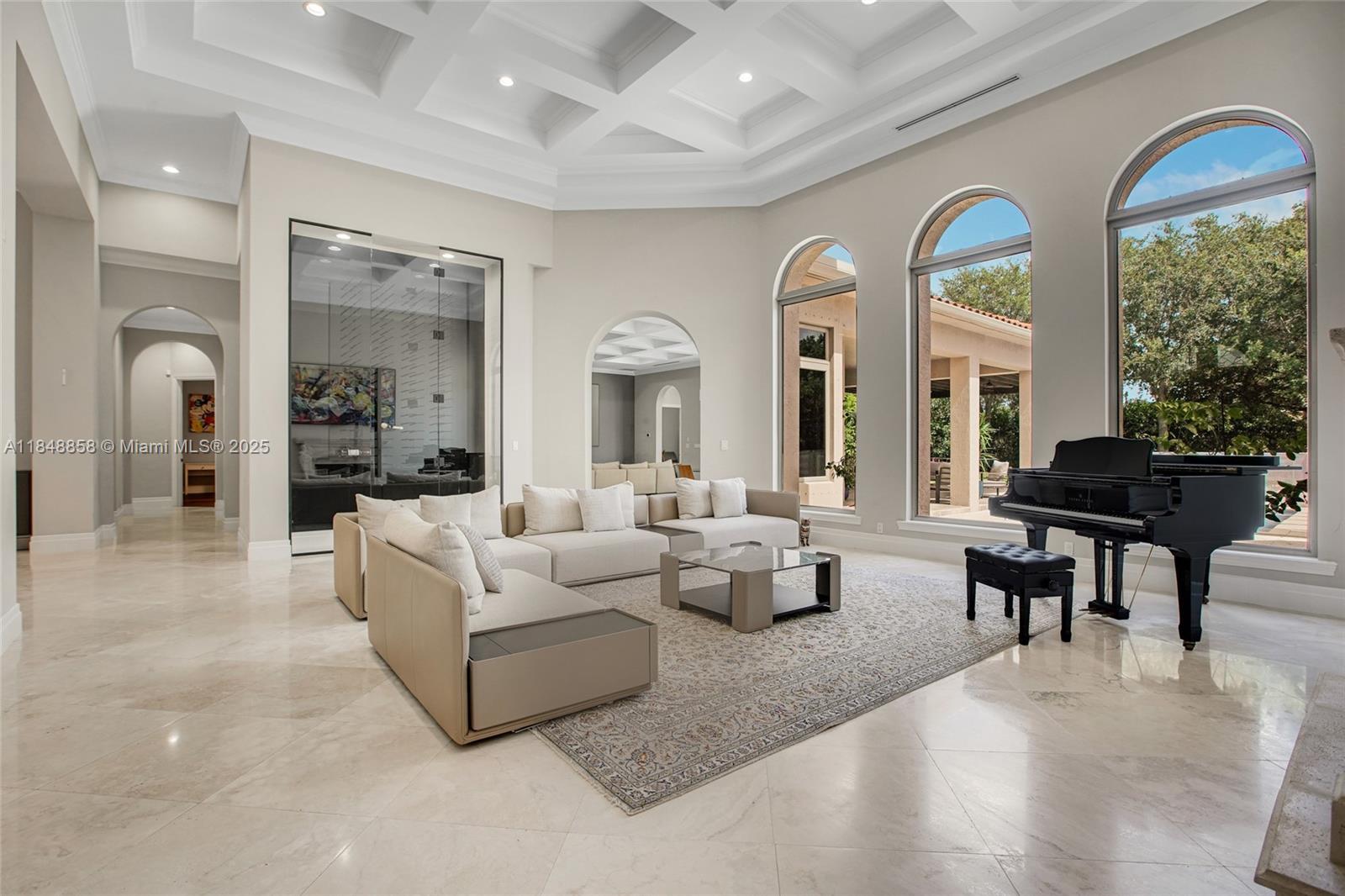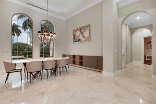Exquisite Estate in Prestigious Saddle Club Estates.Tastefully decorated 5bed/5.5bath custom home boasts 5179' living space w/elegant finishes & upgrades.Oversized master suite w/2 closets, spa-like tub&shower. 16' coffered ceilings, open layout featuring 2 living areas, marble&wood floors, custom walk-in closets&built-ins, huge gourmet kitchen w/Miele and Subzero, 2021 roof, 3 AC, impact windows&doors,3 car garage w/EV charger, full house generator.Specious front yard w grand palms and large back yard w/heated saltwater pool and child gate, full outdoor kitchen w/pergola, multiple fruit trees.This home provides privacy and serenity while being conveniently close to top-rated schools, shopping and recreation w/ access to Bonaventure Town Center Club. Come experience it in person!