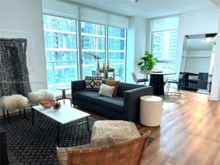 Very unique floor plan for this 2 bedroom, 2 bathroom unit at Met 1, stylish and elegant, fully furnished, split floor plan, 2 suites, new laminated flooring, custom built-in walk-in closets, washer and dryer, screens and block-out curtains, balcony, painted in white, , ready to move in. Excellent location close to Whole Foods, Bayside, Arena, Port of Miami, Downtown and Brickell Ave. One assigned parking space, pool, gym, sauna, business room, lounge. Concierge.