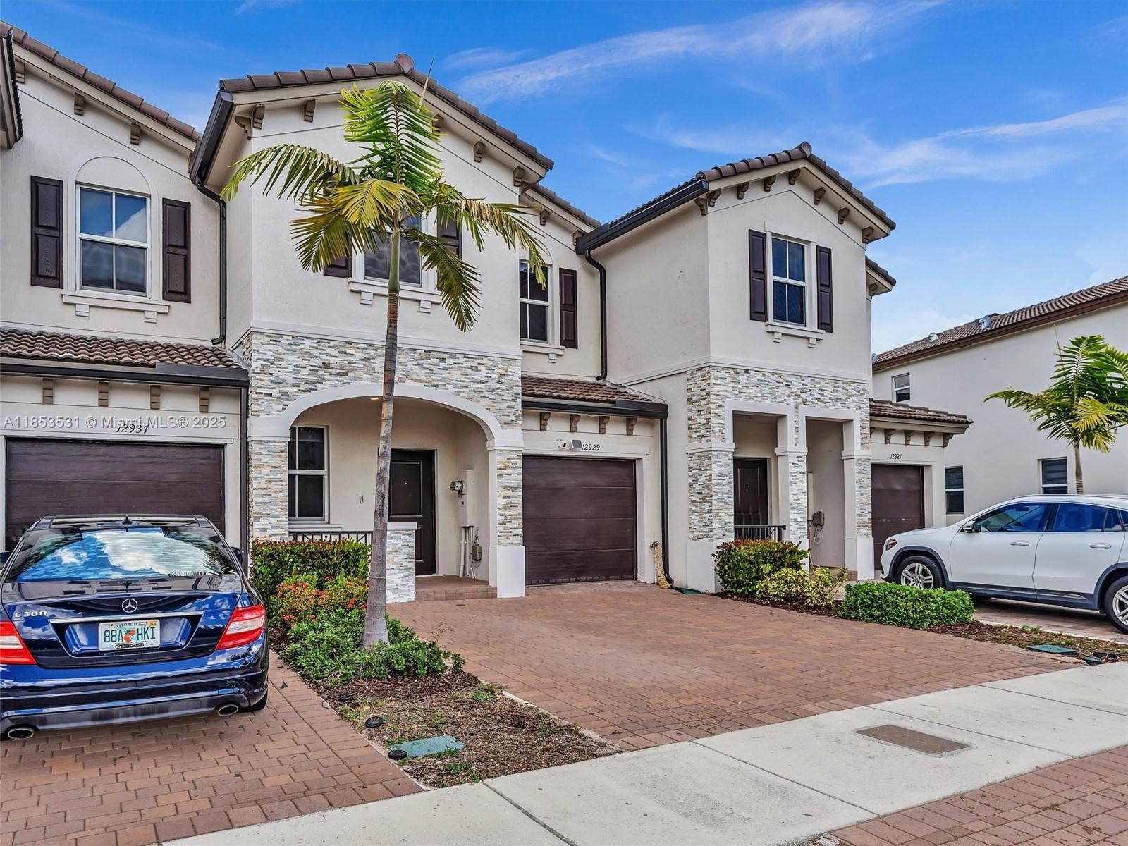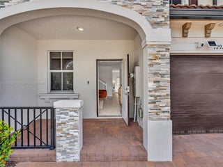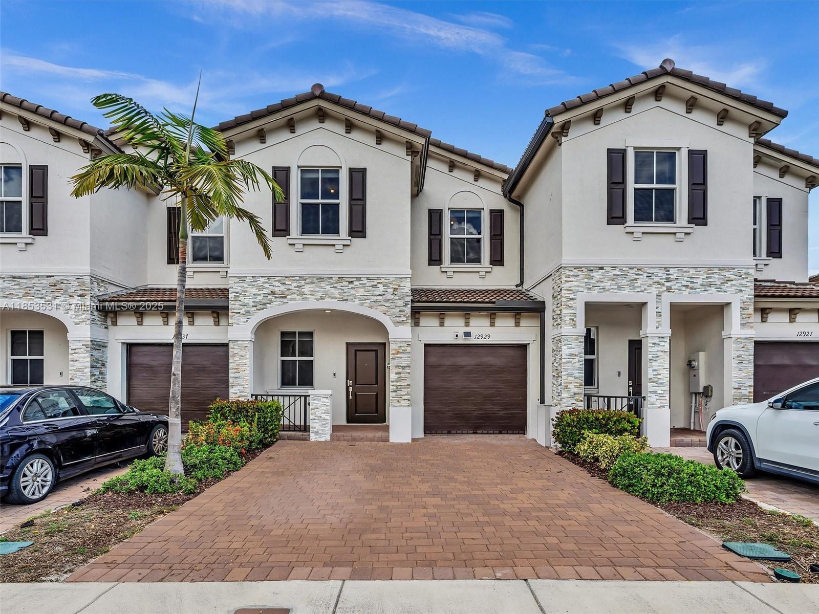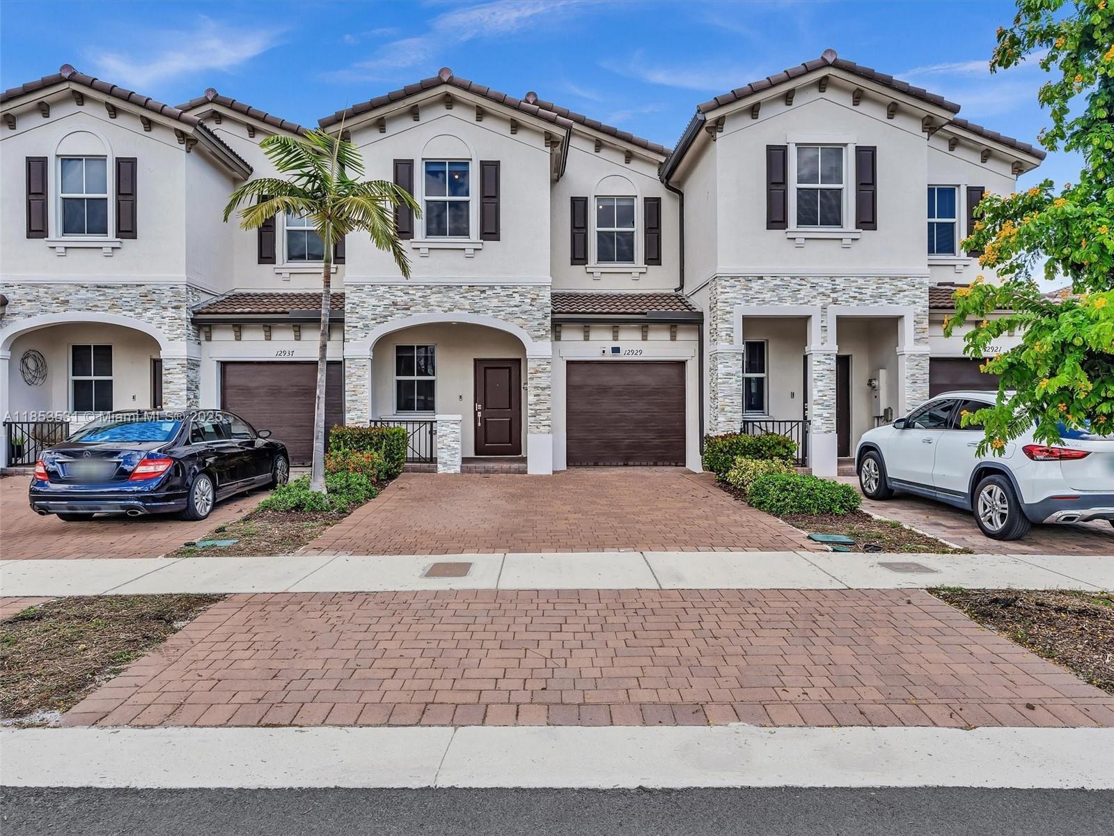 This beautiful newly built 3-bed, 2.5-bath townhome, offers chic sun-filled interiors with carpet upstairs and ceramic tile downstairs. The spacious master suite features a walk-in closet and a bathroom with dual sinks and a stand-up shower. The eat-in kitchen, complete with stainless steel appliances and a breakfast bar, seamlessly flows into the open-concept living and dining area. Step outside to a private backyard where a sitting and BBQ area awaits. Located in a gated community this home is just steps away from a dog park, kids' playground, resort-style clubhouse featuring a luxurious pool and jacuzzi lounge. Additional highlights include impact windows, a covered front porch, a 1-car garage with 4 car driveway, and it's just minutes from dining, shopping, highways, and Miami Airport.