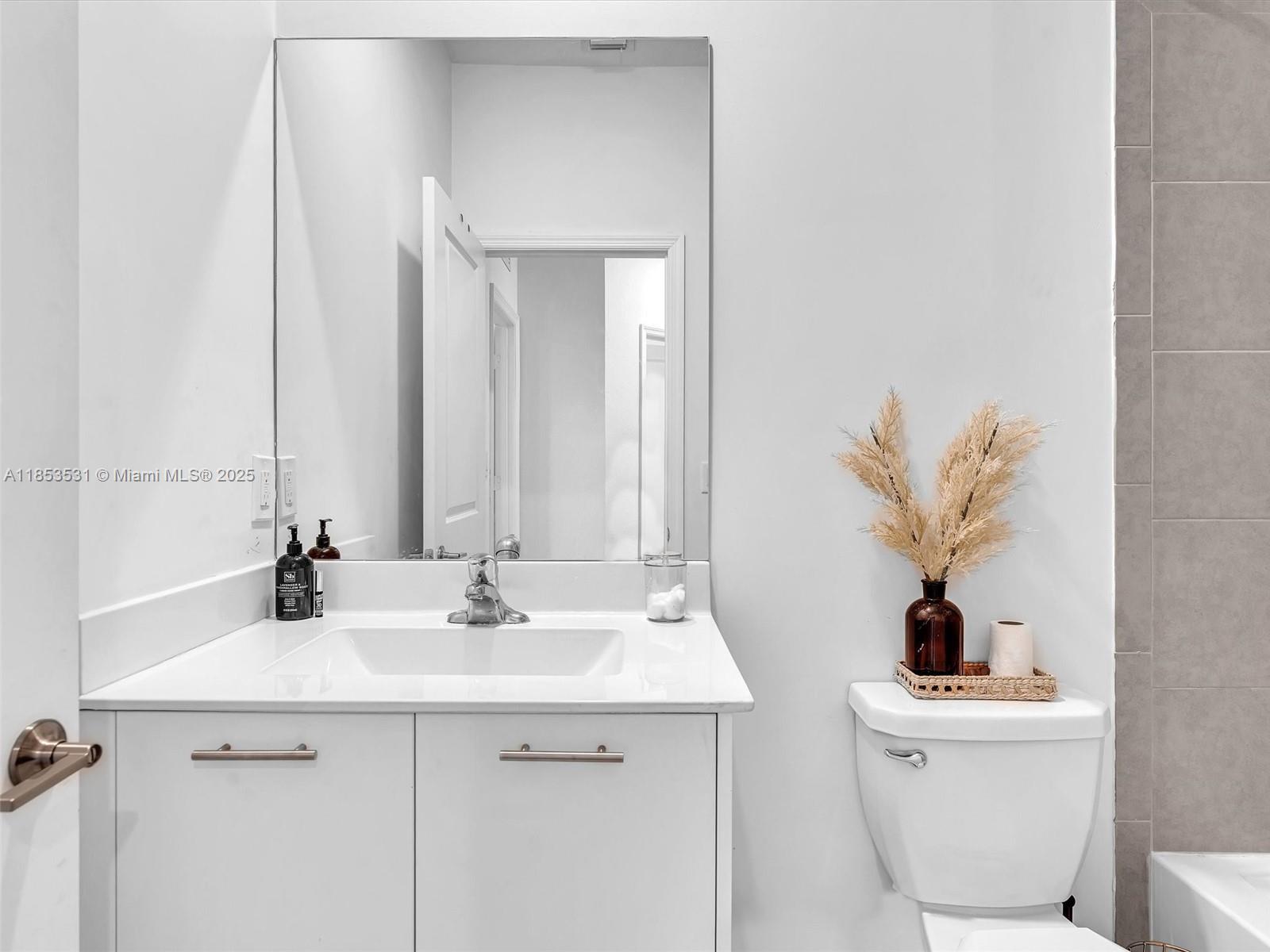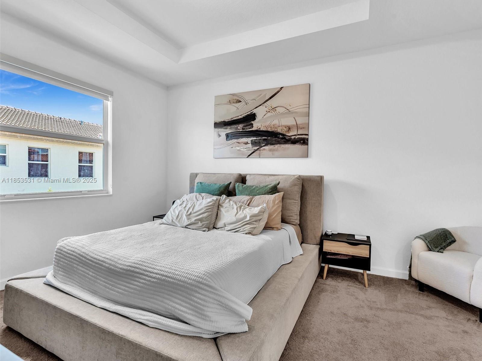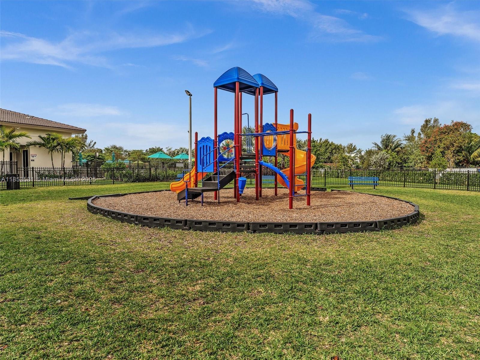 This beautiful newly built 3-bed, 2.5-bath townhome, offers chic sun-filled interiors with carpet upstairs and ceramic tile downstairs. The spacious master suite features a walk-in closet and a bathroom with dual sinks and a stand-up shower. The eat-in kitchen, complete with stainless steel appliances and a breakfast bar, seamlessly flows into the open-concept living and dining area. Step outside to a private backyard where a sitting and BBQ area awaits. Located in a gated community this home is just steps away from a dog park, kids' playground, resort-style clubhouse featuring a luxurious pool and jacuzzi lounge. Additional highlights include impact windows, a covered front porch, a 1-car garage with 4 car driveway, and it's just minutes from dining, shopping, highways, and Miami Airport.