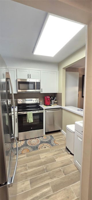 BRING ALL OFFERS. Building 133 Welcome home to this completely remodeled 3rd floor unit. It will be hard to find a more modernized unit. Brand new kitchen with stainless appliances including DISHWASHER. New cabinets, countertops and large pass thru to dining room. Porcelain tile thru-out. Beautiful bath with new vanity, toilet, and all fixtures. Enjoy coffee or wine on your enclosed patio with wonderful lake view. Unit has closets galore including a large walk-in closet in your oversized bedroom, and additional storage unit just steps from the unit. Laundry and elevator are also close. Sunrise lakes offers many amenities such as pools, golf, pickleball, and shuttles to shopping, doctor and nearby casinos! Photos in listing are staged. Furniture does not convey. Unit on SUPRA.