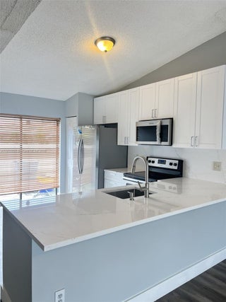 Beautiful, renovated villa, 2 bedrooms and 2 bathrooms with vaulted ceiling and open floor plan, vinyl flooring throughout, freshly painted, new kitchen cabinets, with gorgeous quartz countertops, stainless steel appliances. Two private patios in the front and back of the unit, full size washer and dryer. Excellent location walking distance shopping, great schools. Community pool. Don't miss it!