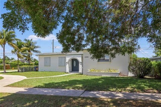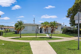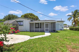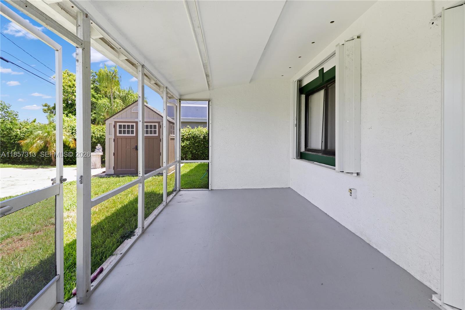 Experience the perfect blend of style and convenience in this charming corner-lot home! Enjoy a modern, updated kitchen and baths, featuring sleek quartz countertops and new cabinetry. Wood-like flooring throughout provides a seamless flow and easy maintenance. There is a new AC system and new PVC piping. A full-termite tenting was completed, and a transferable termite warranty has just been renewed. Step outside to a private backyard oasis with a covered screened patio, perfect for entertaining or relaxing. The included shed offers extra storage space for all your tools and toys. With a circular driveway providing ample parking and convenience, and hurricane shutters for peace of mind, this home is as practical as it is beautiful. Don't miss your chance to own this move-in-ready gem!