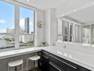 Stunning, Panoramic Water Views of the bay and city skyline, spacious updated corner residence, two balconies, lots of natural light, wood floors, open kitchen to living area, two parking spots, storage unit, pool, 2 story fitness gym, 24-hour concierge, valet, walking/jogging trail, guard-gated private island, exclusive Brickell Key, walking distance to Brickell City Centre, local dinning, shopping, and entertainment, close to airport.