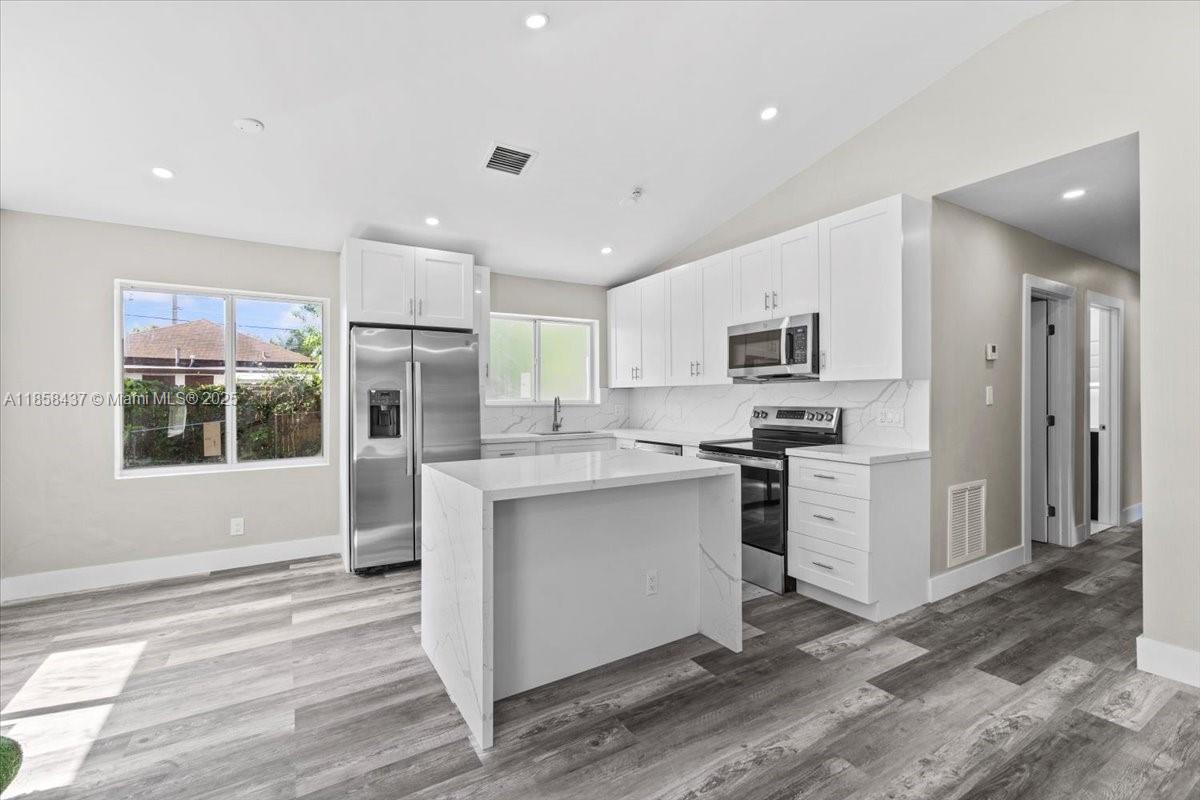 Fully renovated 4BR/2BA South Miami home offering short-term, mid-term or long term leases. Enjoy a 2025 roof, new impact windows, luxury LVP flooring, and an open kitchen with granite counters and a waterfall island. Bright living and dining spaces flow to a large fenced backyard ideal for pets, play, and entertaining. Home includes a top-load washer/dryer. Prime location near the Turnpike, UM (approx. 1.2 miles), Merrick Park, parks, dining, and a walkable urban vibe. Modern, move-in ready living in the heart of South Miami. Also an ideal property for student housing.