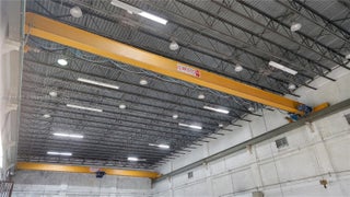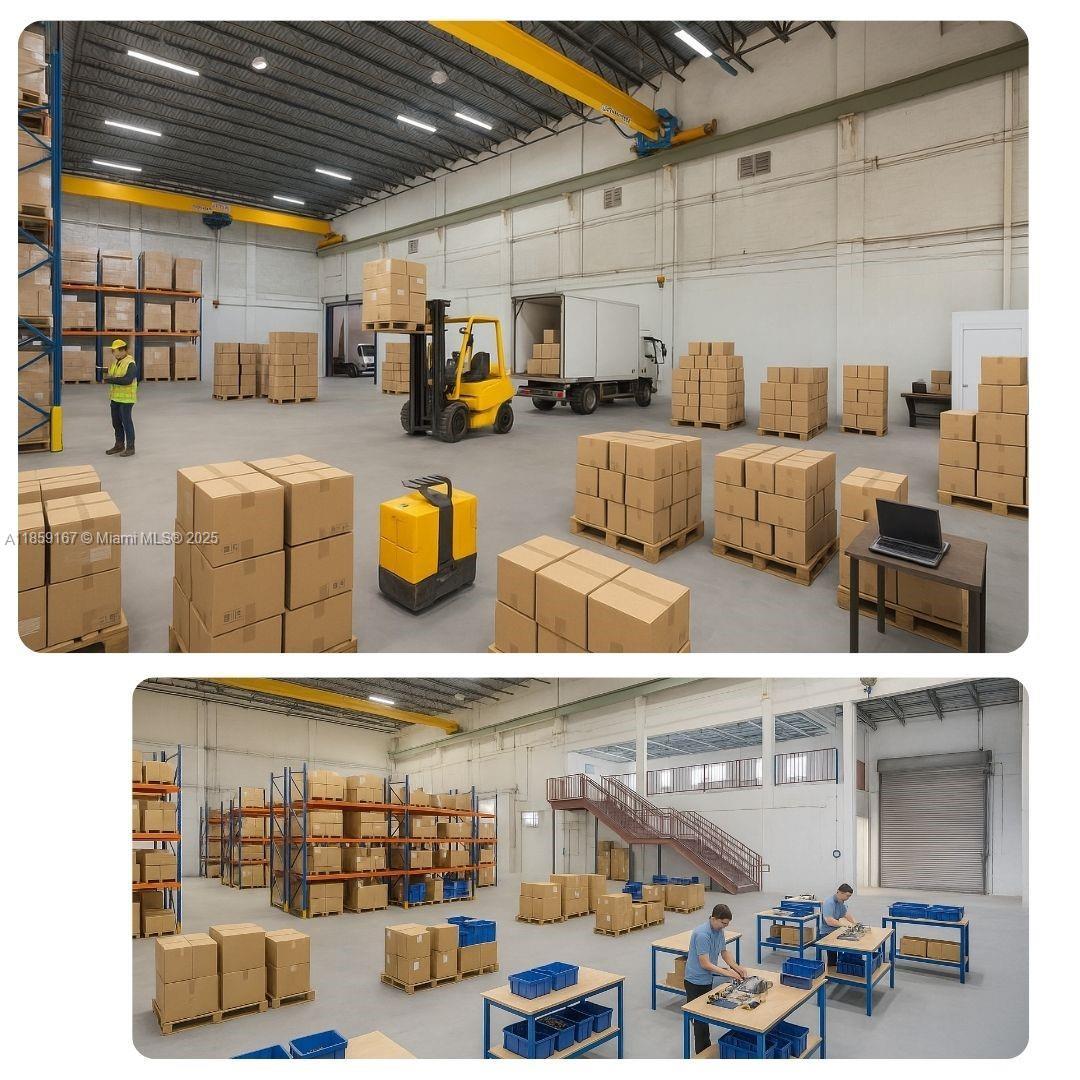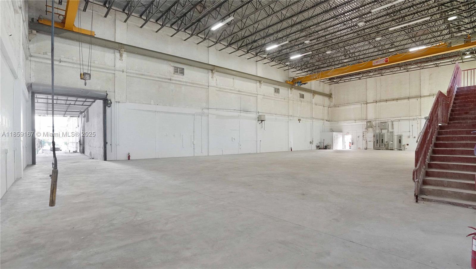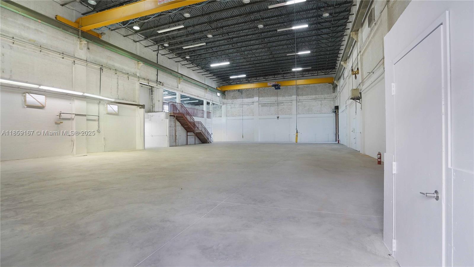 Single-user warehouse featuring 32' clear height and a clear-span layout with no interior columns and a large mezzanine. Includes one covered, dock-high loading door and one overhead drive-in door. Equipped with 3-phase power and two installed 3.2-ton cranes with hoists. On-site parking for up to 9 vehicles with 6 spaces inside a gated area (7-assigned, 2-shared). There is a detached 1,500 sf office area offers a private office with a full bathroom and kitchenette, large secondary office space, large open reception area and one additional half bathroom that can be combined with this space.