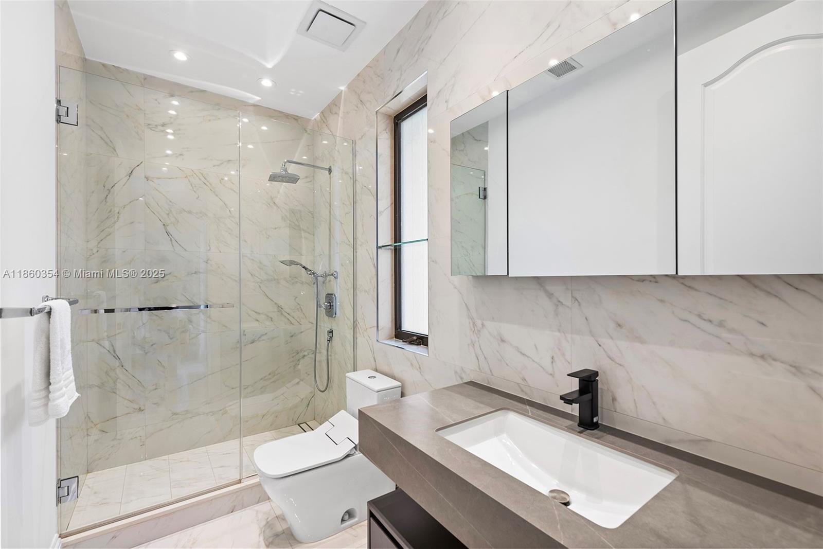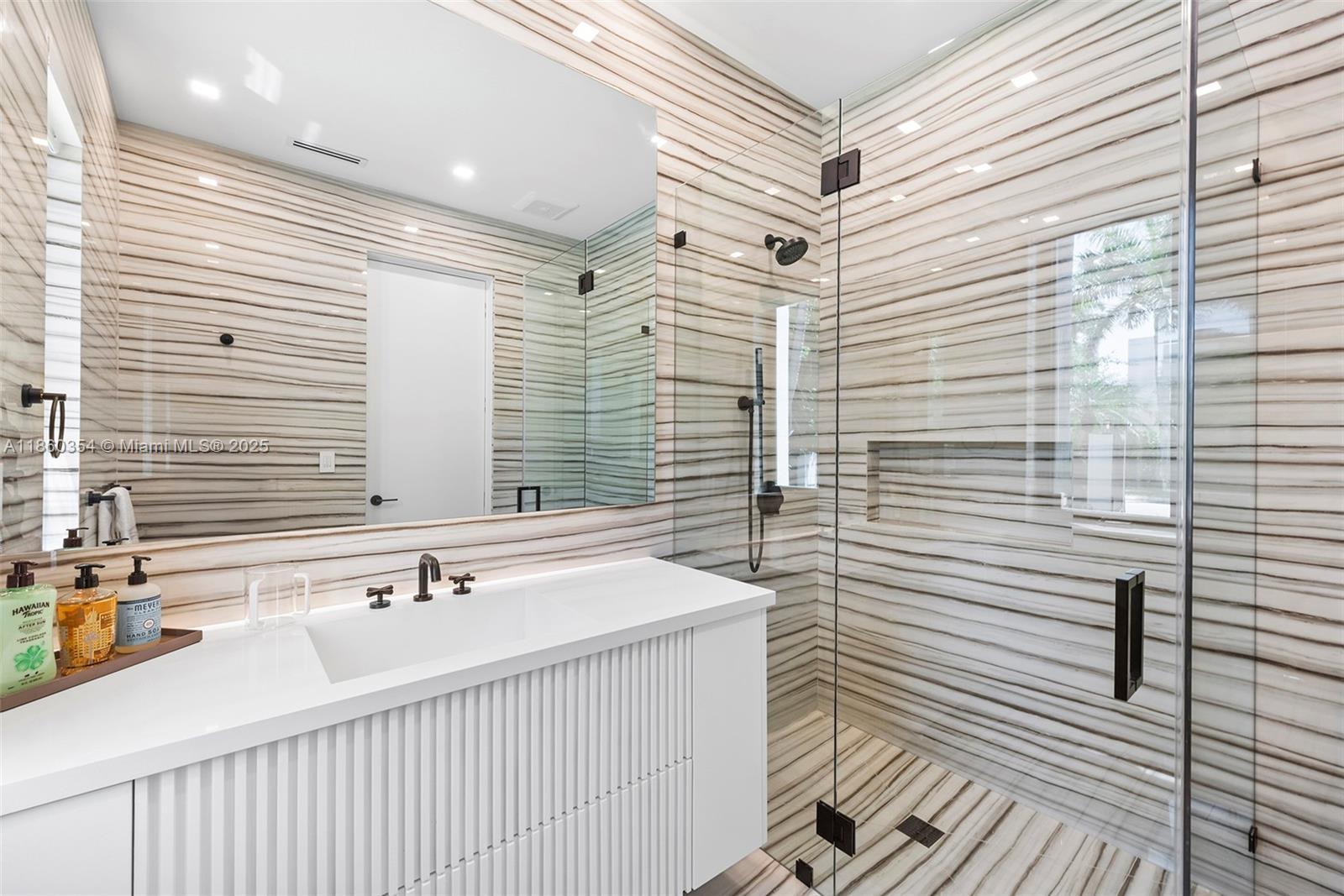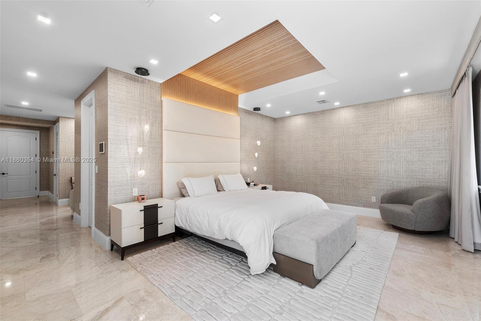 Completely reimagined and renovated in 2022, this Bal Harbour Village estate combines modern luxury with timeless elegance. With over 6,200 sq ft, the 6-bedroom, 6.5-bath residence features soaring ceilings, a private elevator, gourmet kitchen with premium appliances, and a fully equipped gym. The primary suite includes a spa-inspired bath and dual custom walk-in closets. Designed for comfort and entertaining, enjoy seamless indoor-outdoor living with a heated saltwater pool, spa, covered terrace, and landscaped grounds. Steps from Bal Harbour Shops and minutes from Sunny Isles, Surfside, and Miami Beach, this home offers access to beaches, top schools, a private marina, and fine dining. Furniture may be purchased separately.