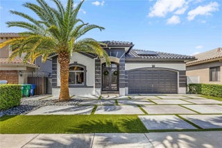 Discover the perfect blend of luxury and efficiency in this beautifully updated eco-friendly residence. From the moment you arrive, you’re greeted by pristine curb appeal and stunning double glass entry doors that set the tone for what lies inside. Designed for the modern homeowner, this home comes equipped with a full solar panel system and battery backup that can power the entire home during outages. Impact windows and doors offer storm protection and superior insulation throughout. Floor plan features elegant finishes and flows seamlessly. Enjoy gourmet kitchen and custom cabinetry. Primary suite offers a spa-like bath with double vanity, glass shower, and walk-in closet. Step outside to your private oasis with a heated saltwater pool, child-safety fence, and tall privacy landscaping.