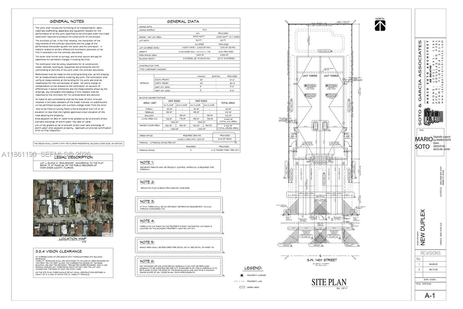 Shovel-ready T3-O duplex site in Shenandoah/Little Gables. 4,800 SF lot with income-producing duplex (Actual Area 1,540 SF) on month-to-month tenants cash flow until you break ground. City-approved plans for a NEW duplex: 1,880 SF per unit (3,740 SF total). Save 12–18 months and start building now. Ideal for infill builders, small developers & 1031 buyers. Minutes to Brickell, Coral Gables, Coconut Grove & MIA. Quick-close target price: $700,000. Special developer package: 4 contiguous lots 3553, 3557, 3561 & 3565 SW 14 St offered together at $2,740,000. Plans/survey on request.