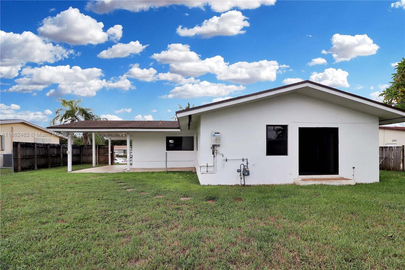Beautifully updated home in Fairway Pines, freshly painted inside and out, offering a spacious and comfortable living environment. This 2-bedroom, 1-bathroom residence features an excellent layout with generously sized bedrooms and an expansive, oversized yard, fully fenced for privacy. A covered patio on the side of the home offers the perfect spot for relaxing or entertaining. The interior boasts durable wood-like tile flooring throughout the main living areas and newly installed vinyl floors in the bedrooms. The large kitchen is a highlight, featuring sleek countertops and stainless-steel appliances. For your safety and peace of mind, all windows are impact-resistant. This home is a perfect blend of modern updates and ample space, both indoors and out.