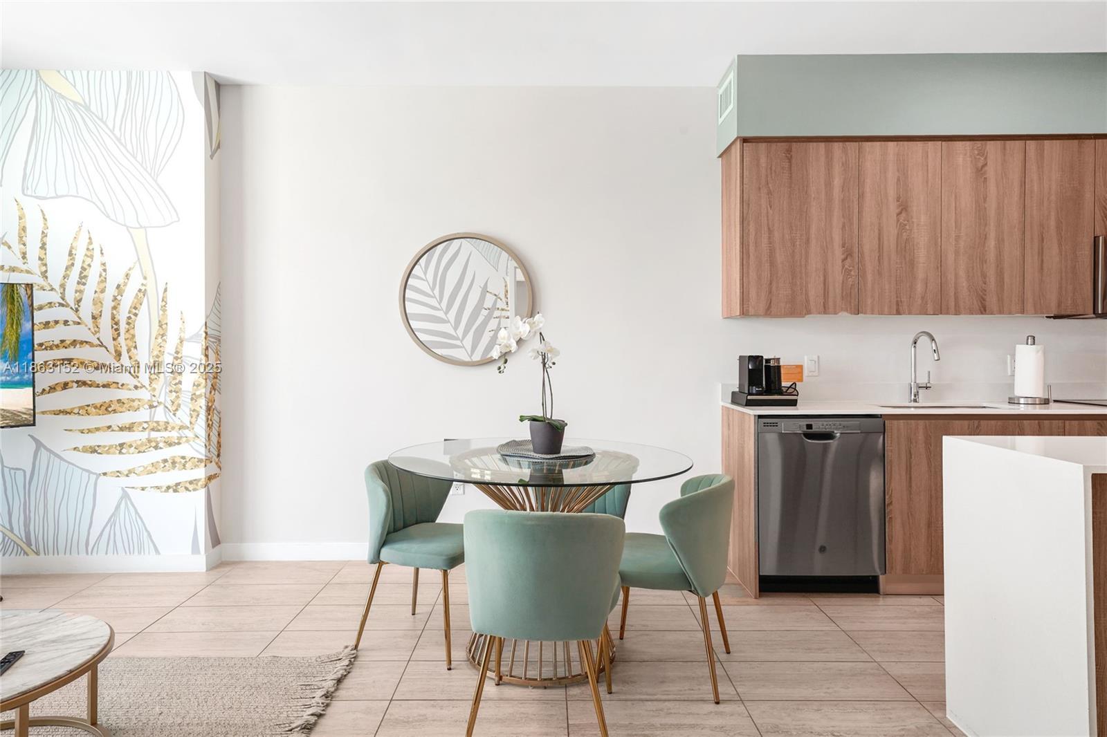 This modern, fully furnished 1-bed, 1-bath condo is your perfect Miami getaway. Spanning a spacious 743 square feet, this unit is designed for both style and convenience, with an in-unit washer/dryer and dishwasher. The walk-in closet is exceptionally large. The building offers top-tier amenities, including a stunning pool deck, a full-service gym and yoga studio, a dog wash station, and bike storage. Perfectly situated just 10 minutes from the airport, you'll be minutes from Miami's most vibrant neighborhoods—the Design District, Midtown, and Edgewater. This puts you right in the middle of the city's best dining, shopping, and entertainment, making it an ideal part-time residence.