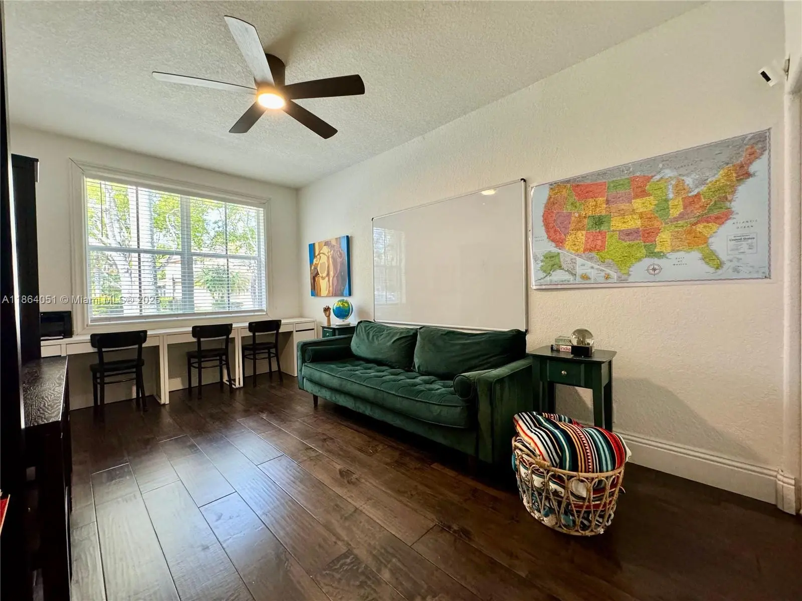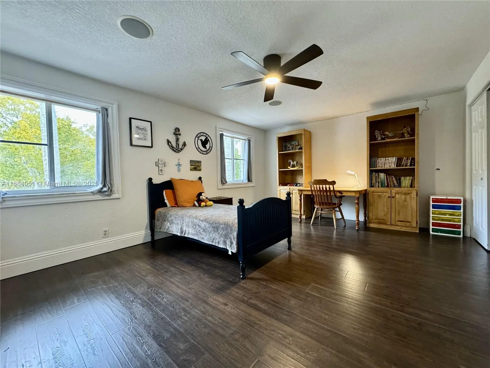 Stunning, Renovated 6-Bed/4-Bath Home with Designer Finishes! This elegant residence showcases rich dark wood engineered flooring throughout and custom trim work on all windows and doors. Enter into a dramatic double-height living room, flowing into a formal dining area perfect for entertaining. The expansive kitchen is a chef’s dream, seamlessly connected to a spacious TV room and second formal dining space. Step outside to a backyard oasis featuring a beautifully extended covered sitting area — ideal for outdoor gatherings. Upstairs, you’ll find four generously sized bedrooms plus a luxurious oversized primary suite with abundant closet space and a dedicated storage room. Additional highlights include brand-new A/C units, premium updates throughout.