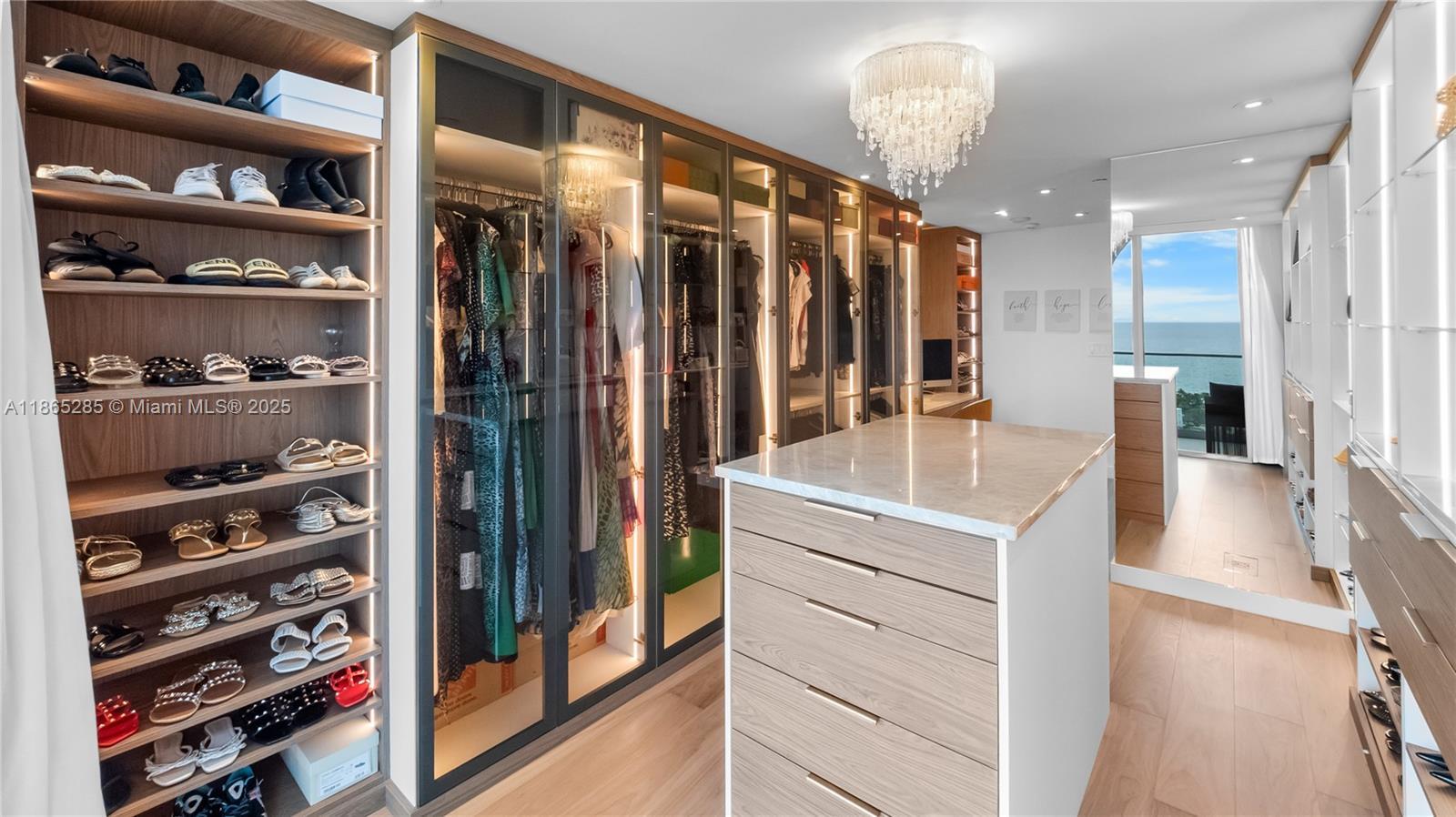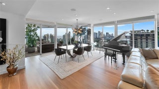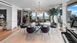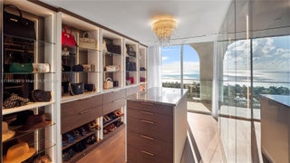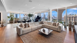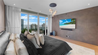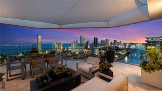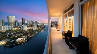 Experience luxury living in this exclusive Penthouse with breathtaking direct ocean and Intracoastal views. Perfectly located near Aventura Mall, beaches, and fine dining, this 5-bedroom, 3.5-bath residence features two master suites, including a primary with a custom women's closet and a stunning Versace-tiled bath. The gourmet kitchen boasts Wolf & Sub-Zero appliances, Italian finishes, and Cristalito countertops with underlighting. Elegant interiors include custom cabinetry, a Versace-trimmed fireplace, Sonos audio, Lutron lighting, and remote blinds. A wraparound balcony invites outdoor dining and entertaining. Resort-style amenities include pool, valet, fitness center, restaurant, theatre, social room & marina.Fully funded reserves.