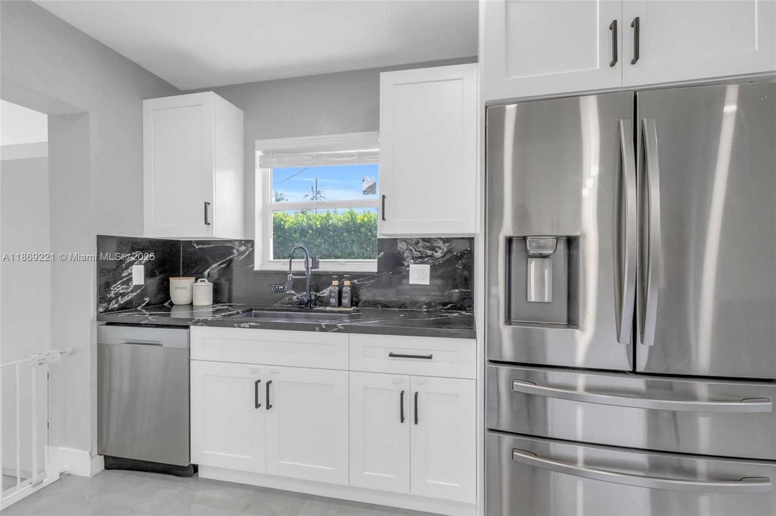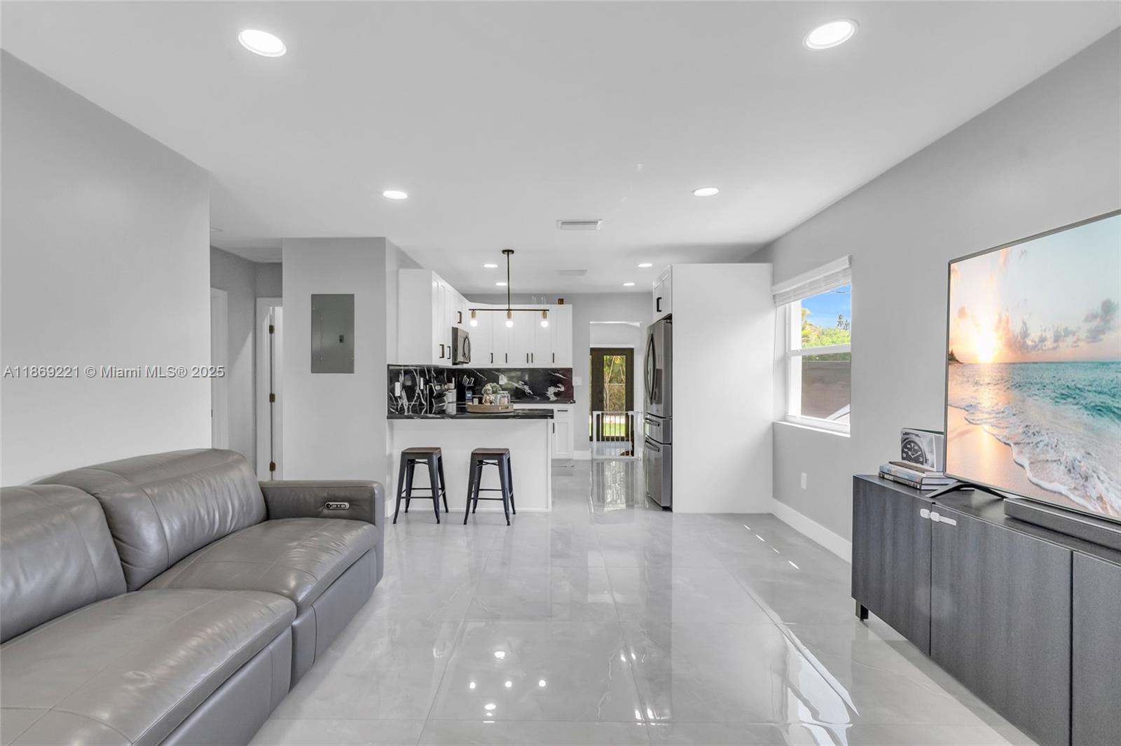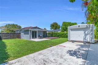 This beautifully renovated home showcases modern elegance with sleek porcelain floors, an open-concept layout, and a designer kitchen featuring quartz countertops, stainless steel appliances, and custom cabinetry. Natural light fills the spacious living areas, while the bathroom has been tastefully updated with luxury finishes. Outdoors, a private fenced yard with lush landscaping, a wood deck, and a covered patio create the perfect space for entertaining or relaxing. A detached garage-style structure offers additional storage or creative use, all in a prime location just minutes from Coral Gables, shopping, dining, and top-rated schools, making this residence the ideal blend of comfort, style, and convenience.