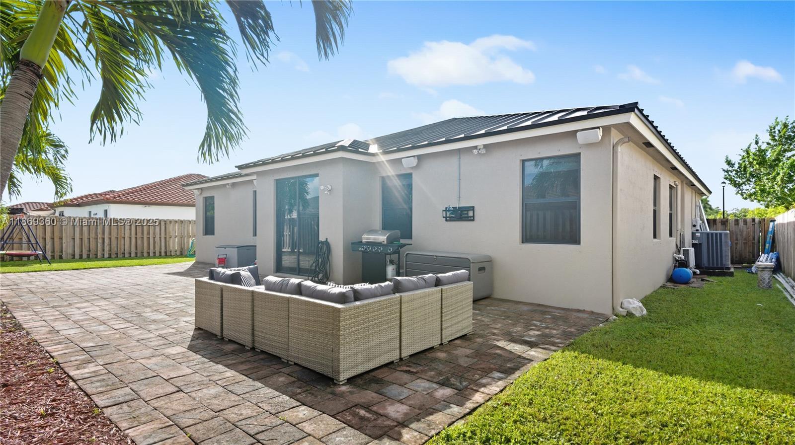 Open House Sat 3–5 PM NEW ROOF, NEW SOLAR PANELS, OVERSIZED PATIO. Exceptional 4-bedroom, 3-bath one-story home in Venetian Parc. Built for comfort and long-term value, it features a premium metal roof and solar panels, both fully paid for efficiency and peace of mind.Inside, enjoy NO CARPET, elegant tile flooring throughout, and a fully renovated kitchen with wine cooler, perfect for gatherings. A flexible room easily serves as a fifth bedroom or home office.The oversized patio, one of the largest in the community, offers plenty of space for entertaining, future pool, or even to park your boat.Complete with a 2-car garage and access to resort-style amenities including clubhouse, pool, fitness center, and playground, this move-in ready home combines quality and lifestyle in perfect balance
