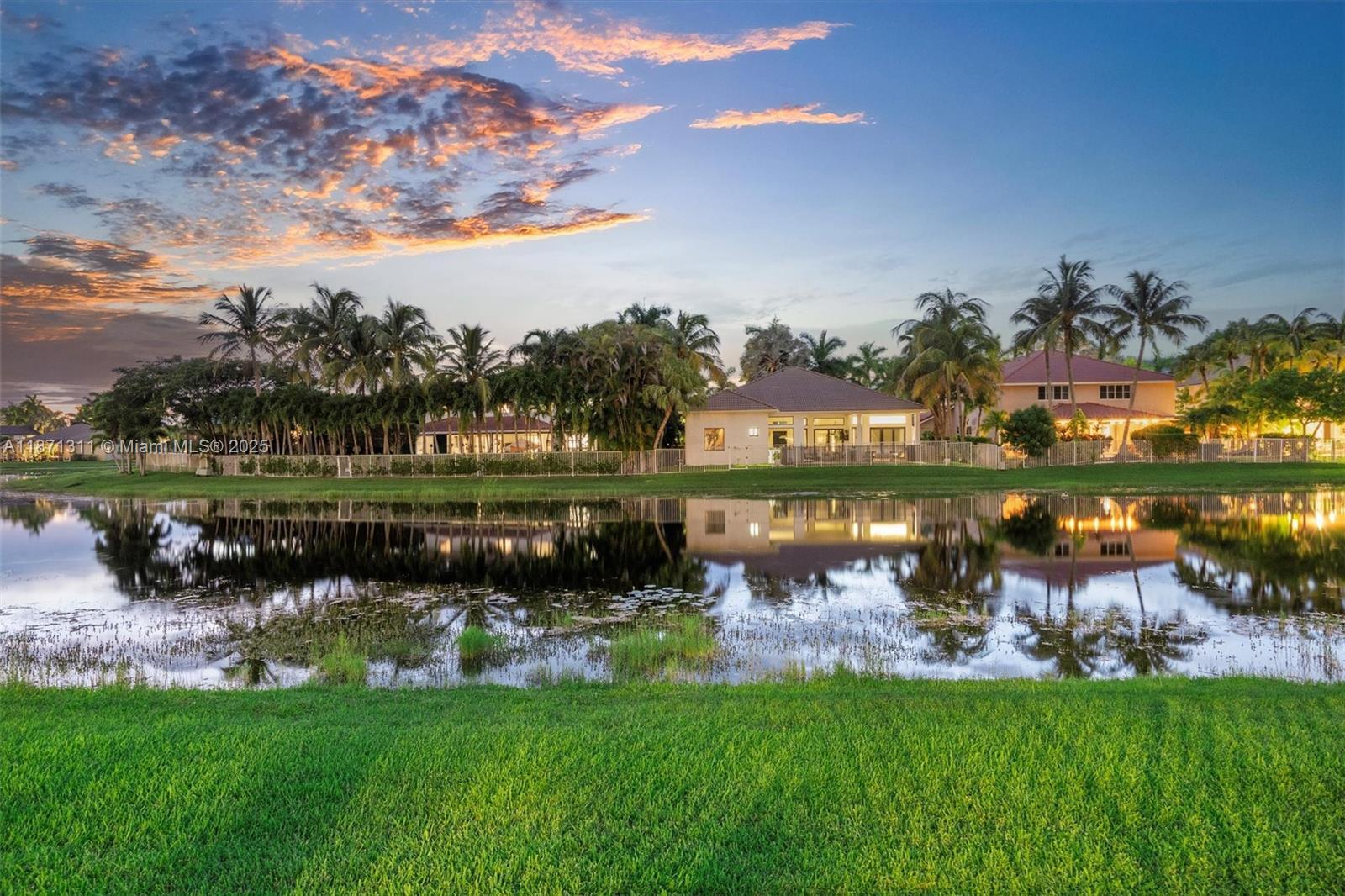 Beautiful lakefront home in Bay Pointe at gated Weston Hills. This 3 beds / 3 full baths one-story features a spacious open layout with 14’ ceilings and abundant light. Chef’s kitchen offers granite counters, stainless steel appliances, and built-in bar. Primary suite boasts 2 walk-in closets and a renovated bath with Maxx tub, walk-in shower, and dual vanities. Guest suite with private bath. Large laundry room. Other features: plantation shutters, LED lighting, accordion shutters, 2-car garage, custom cabinets, epoxy & EV charger. Screened patio, open terrace, fenced yard with room for a pool. Community covers lawn care, fertilization, pressure cleaning, & exterior painting. Roof 2024. Near I-75, dining, parks, and A+ schools. Mortgage savings may be available for buyers of this listing.