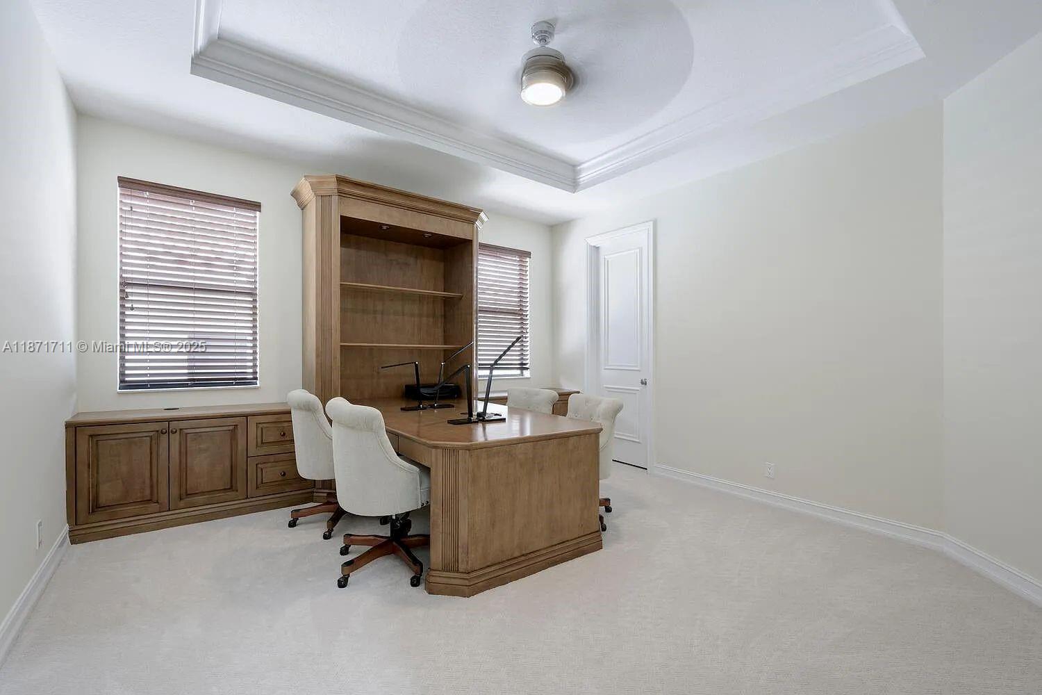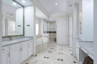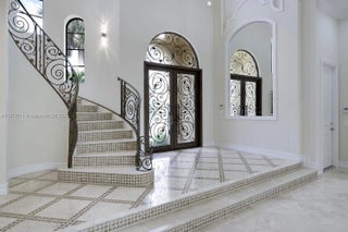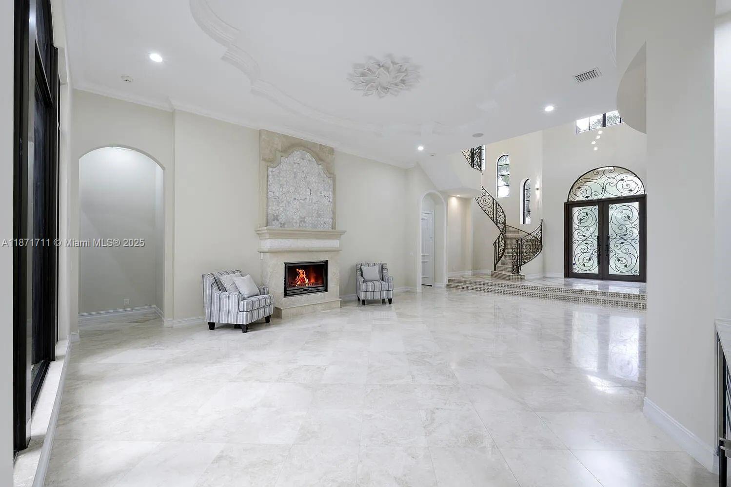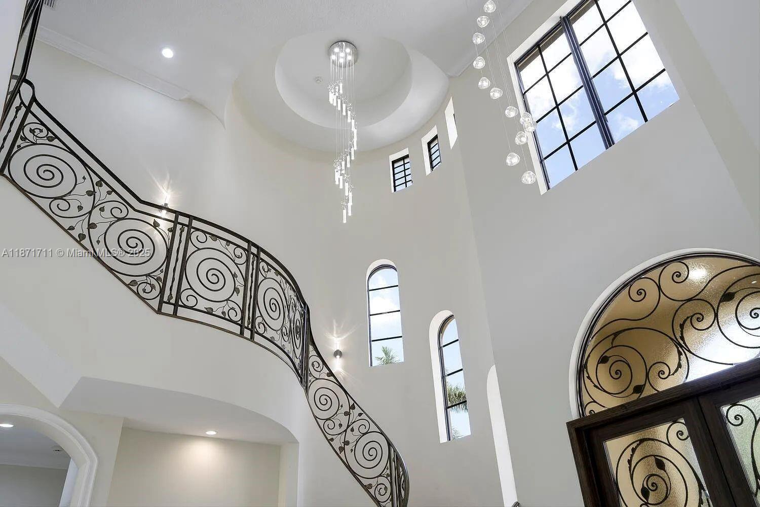 Experience quiet luxury in The Oaks at Boca Raton. This former model home has been meticulously renovated, offering 6 beds, 7.5 baths, and garage. The chef’s kitchen features top-tier appliances, including Liebherr and Fulgor Milano, complemented by quartz countertops and a mother-of-pearl backsplash. Bathrooms showcase Swiss and Toto commodes, frameless glass showers, and quartz vanities. Elegant marble flooring graces the main level, while the grand spiral staircase leads to the expansive second floor. The resort-style pool offers scenic water views. The Oaks provides a luxurious living experience with a focus on wellness, recreation, and social engagement.