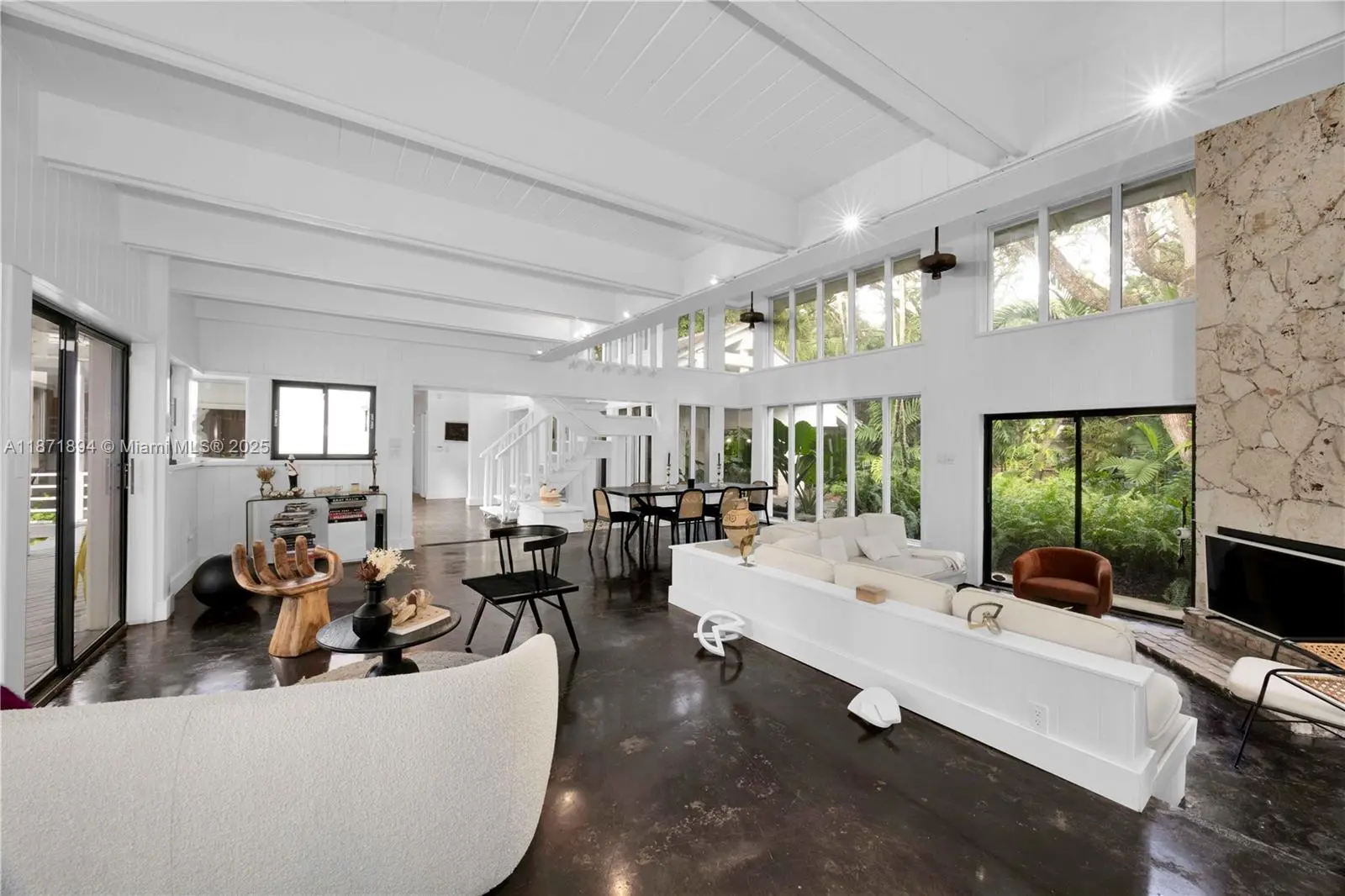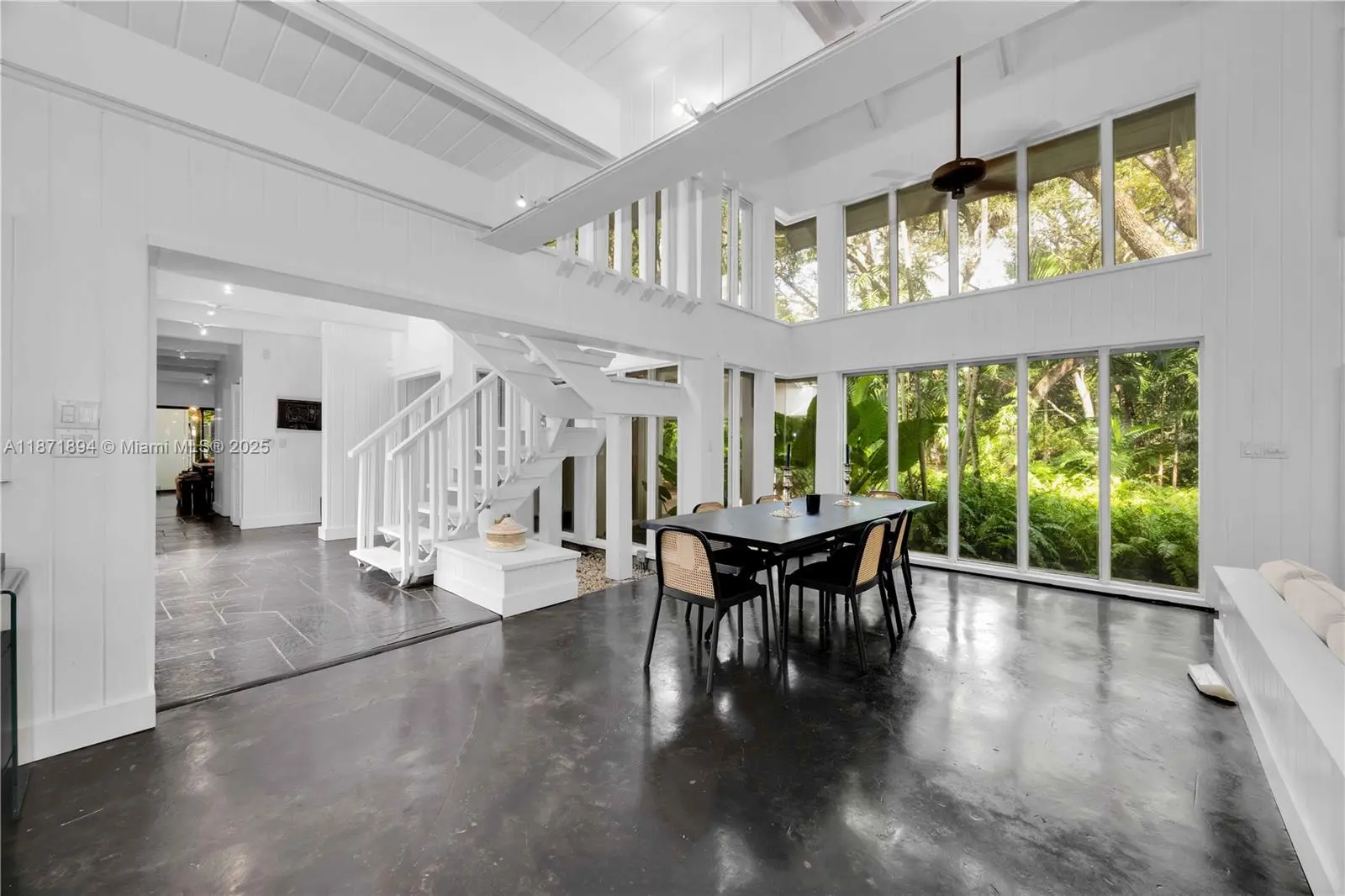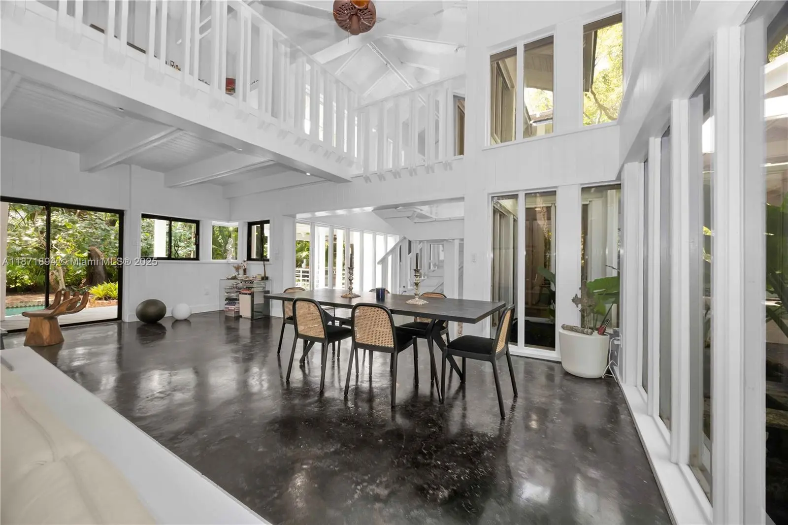 Commanding a privileged location within the prestigious gated community of Snapper Creek Oaks this unique home designed by John Weller encompasses approximately 5,600 sf of generously scaled interiors. Stunning living room with walls of glass & soaring open-beamed ceilings and coral rock fireplace, formal dining room, charming kitchen with adjacent breakfast area and spacious pantry spaces. Three bedrooms occupy the west wing while the tranquil main suite and loft area are privately nestled on the second floor. Open decks and covered patios surround the beautiful pool area and lush grounds. Beautifully updated baths, laundry room, and spacious 2-car garage complete this idyllic "tree house".