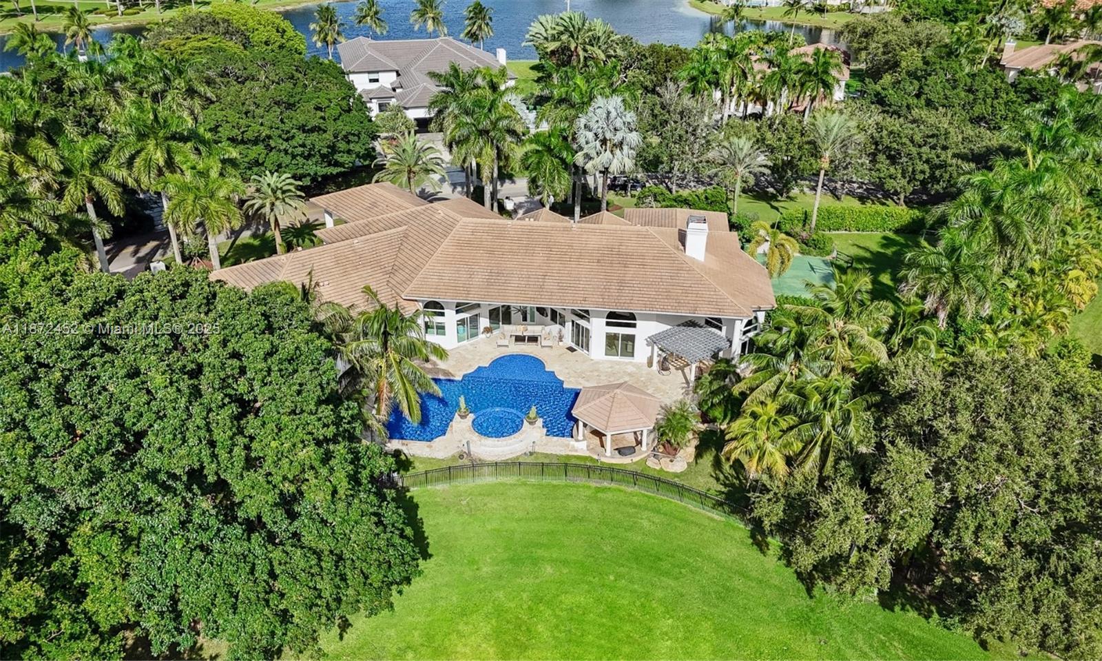 Experience refined lakefront luxury in the prestigious gated community of Windmill Ranch Estates. This meticulously updated estate spans 7,647 SF (10,587 adj. SF) on a 1.5-acre lot, showcasing breathtaking water views and unparalleled privacy. This extraordinary estate features 6 BD, 8.5 BA, office, custom home theater, & billiard room with bar. Soaring 20-ft ceilings and expansive windows fill the open layout with natural light. The gourmet kitchen is equipped with top-tier appliances, 3 Infinity Pro Wine Cooler, and a double-sided fireplace. Outside, enjoy your private resort-style oasis with a lake view pool with new water fixtures, swim-up bar, sunken gazebo, and a fully equipped summer kitchen, all overlooking serene lake views. Additional upgrades include 2021 roof, 4 new A/C units