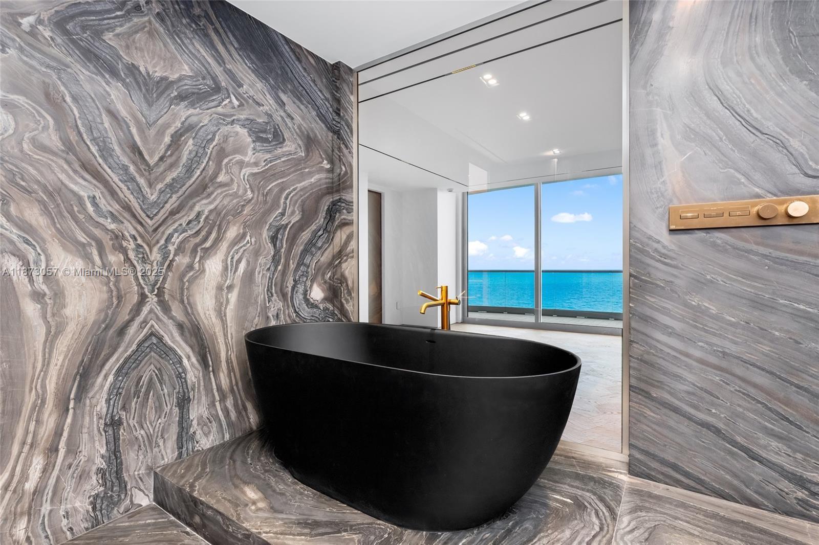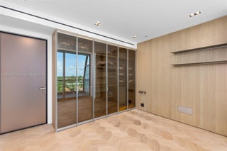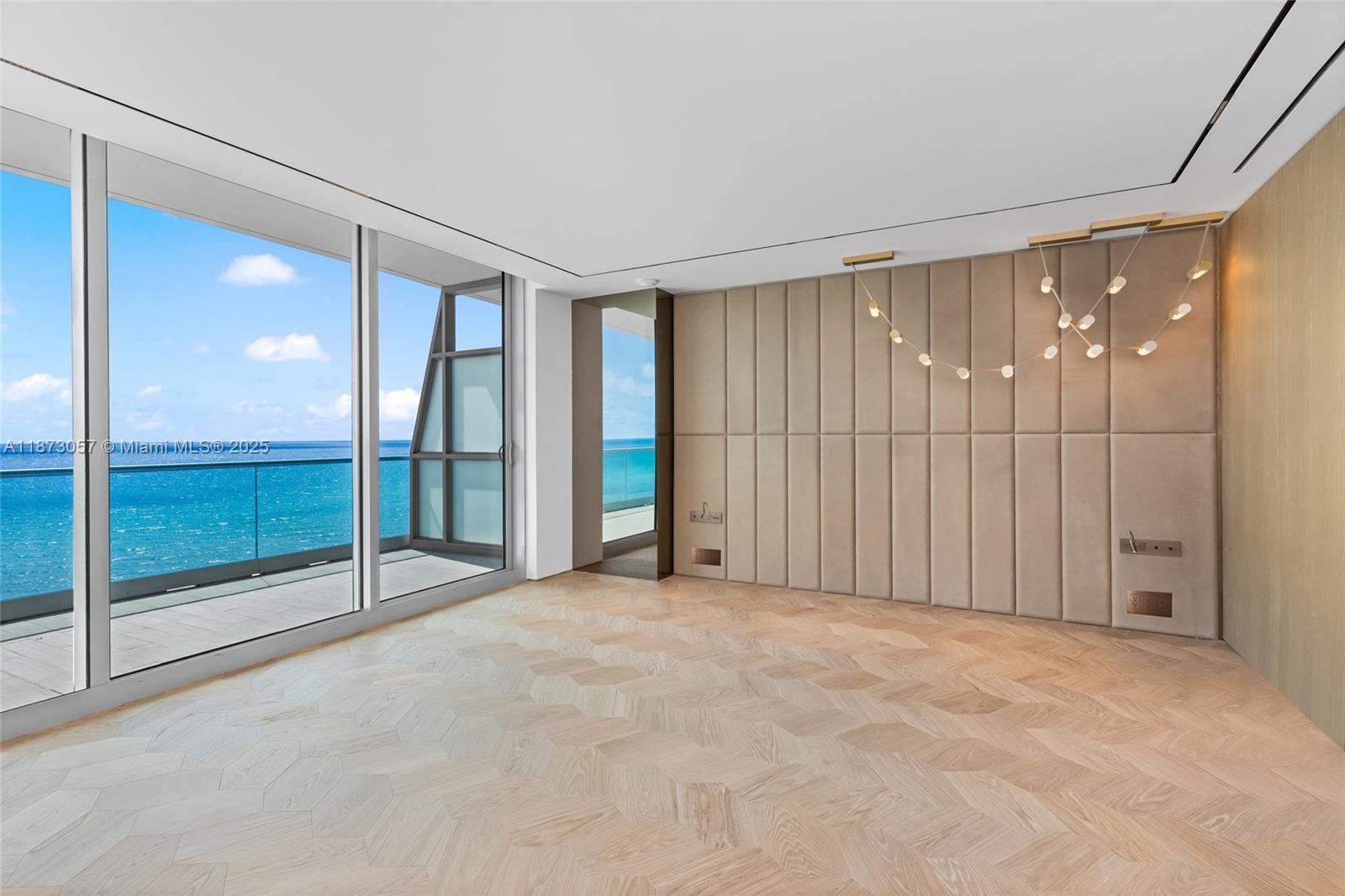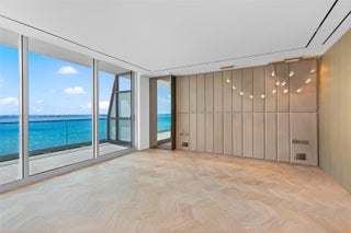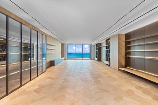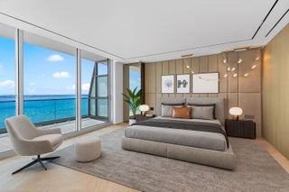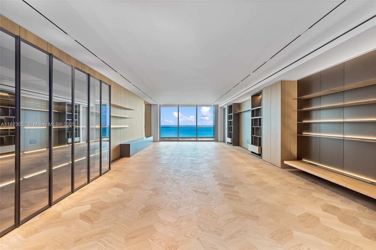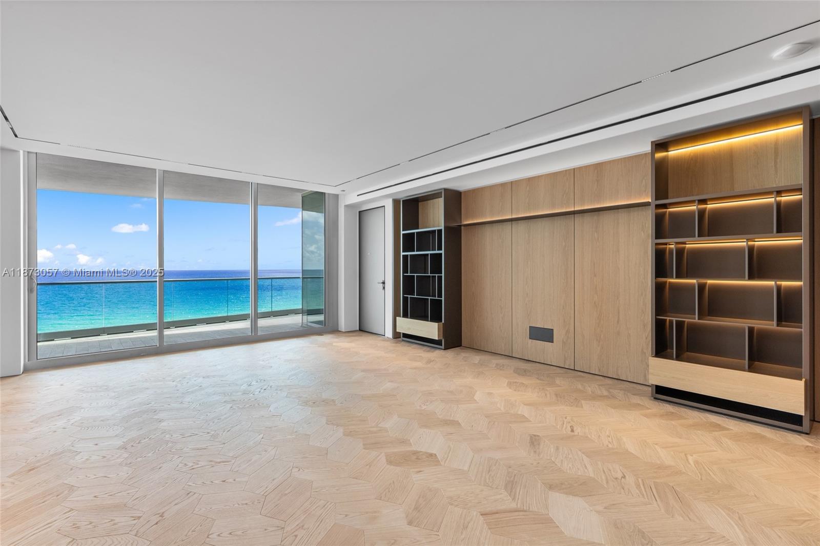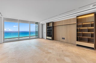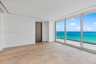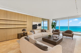 An exceptional offering at Fendi Château Residences. Designed by award-winning Yodezeen, this 4-bedroom, 3.5-bath with staff quarters and family room sets a new standard for oceanfront living. Positioned on the 7th floor with east-to-west flow-through layout, it features 10-ft ceilings, floor-to-ceiling glass, & expansive terraces framing views of the Atlantic, Downtown Miami, & Surfside sunsets. Wood floors by Foglio D’Oro, sleek Lualdi doors, & Italian marble extend throughout. The Poliform kitchen includes custom cabinetry, hidden cooktop, and Gaggenau appliances. Baxter and Artemide lighting add sculptural drama, while the primary suite offers leather panels and spa-like Antonio Lupi vanities. Residents enjoy world-class amenities and valet-only service. Select images virtually staged.