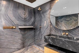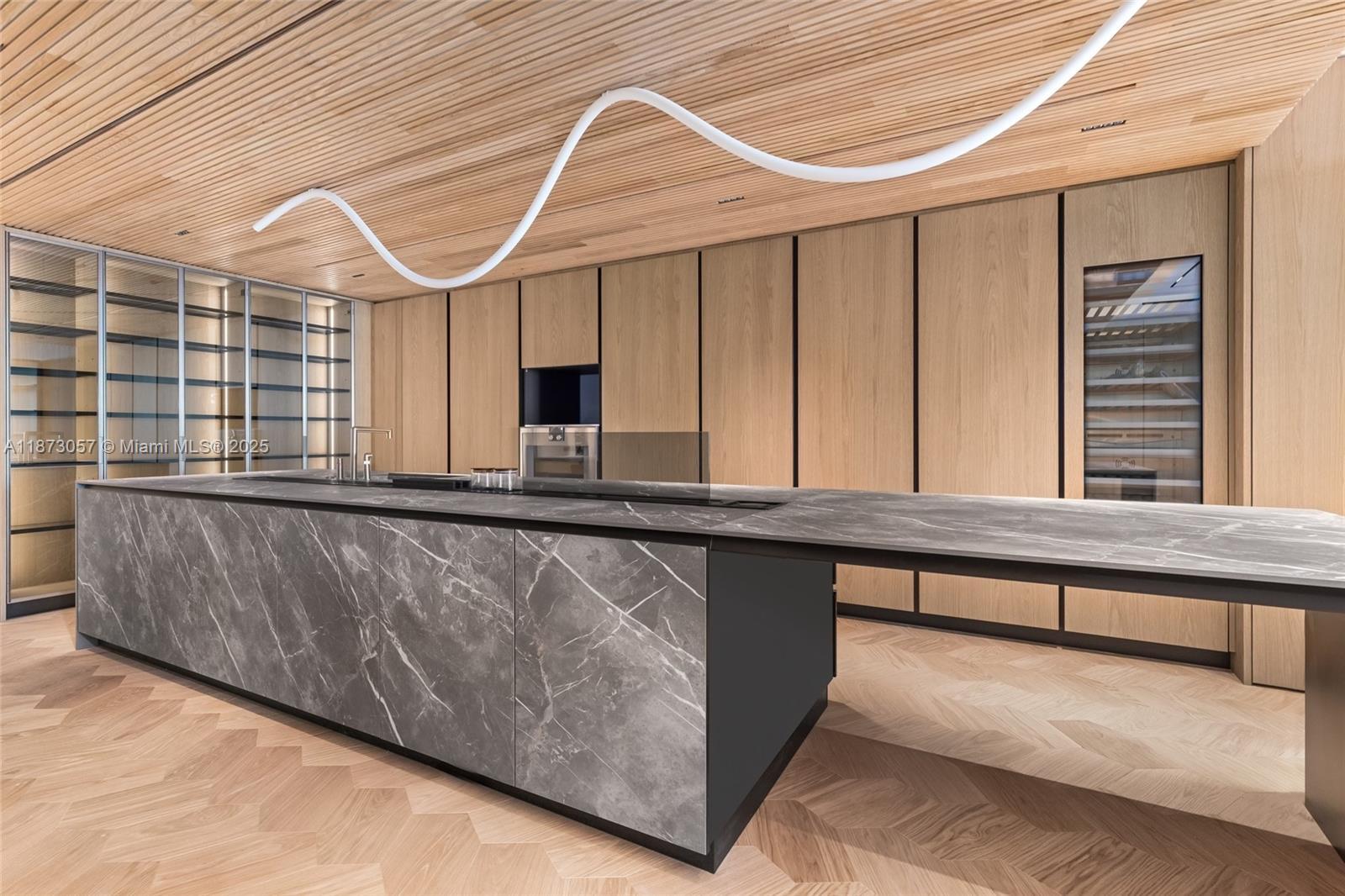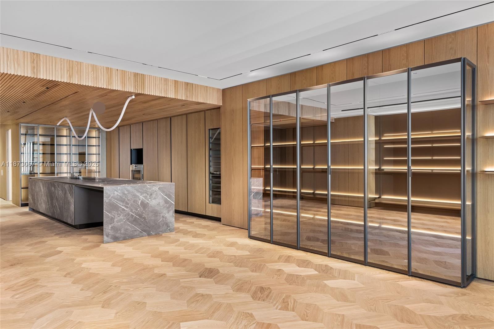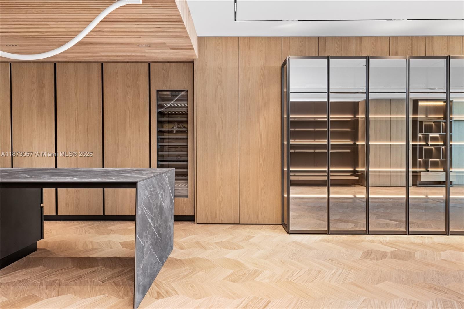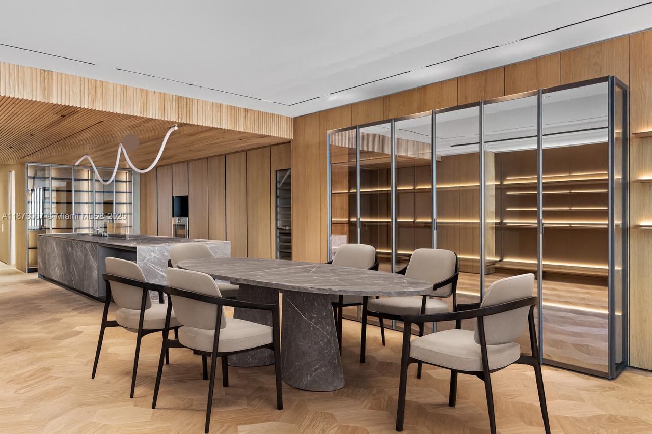 An exceptional offering at Fendi Château Residences. Designed by award-winning Yodezeen, this 4-bedroom, 3.5-bath with staff quarters and family room sets a new standard for oceanfront living. Positioned on the 7th floor with east-to-west flow-through layout, it features 10-ft ceilings, floor-to-ceiling glass, & expansive terraces framing views of the Atlantic, Downtown Miami, & Surfside sunsets. Wood floors by Foglio D’Oro, sleek Lualdi doors, & Italian marble extend throughout. The Poliform kitchen includes custom cabinetry, hidden cooktop, and Gaggenau appliances. Baxter and Artemide lighting add sculptural drama, while the primary suite offers leather panels and spa-like Antonio Lupi vanities. Residents enjoy world-class amenities and valet-only service. Select images virtually staged.