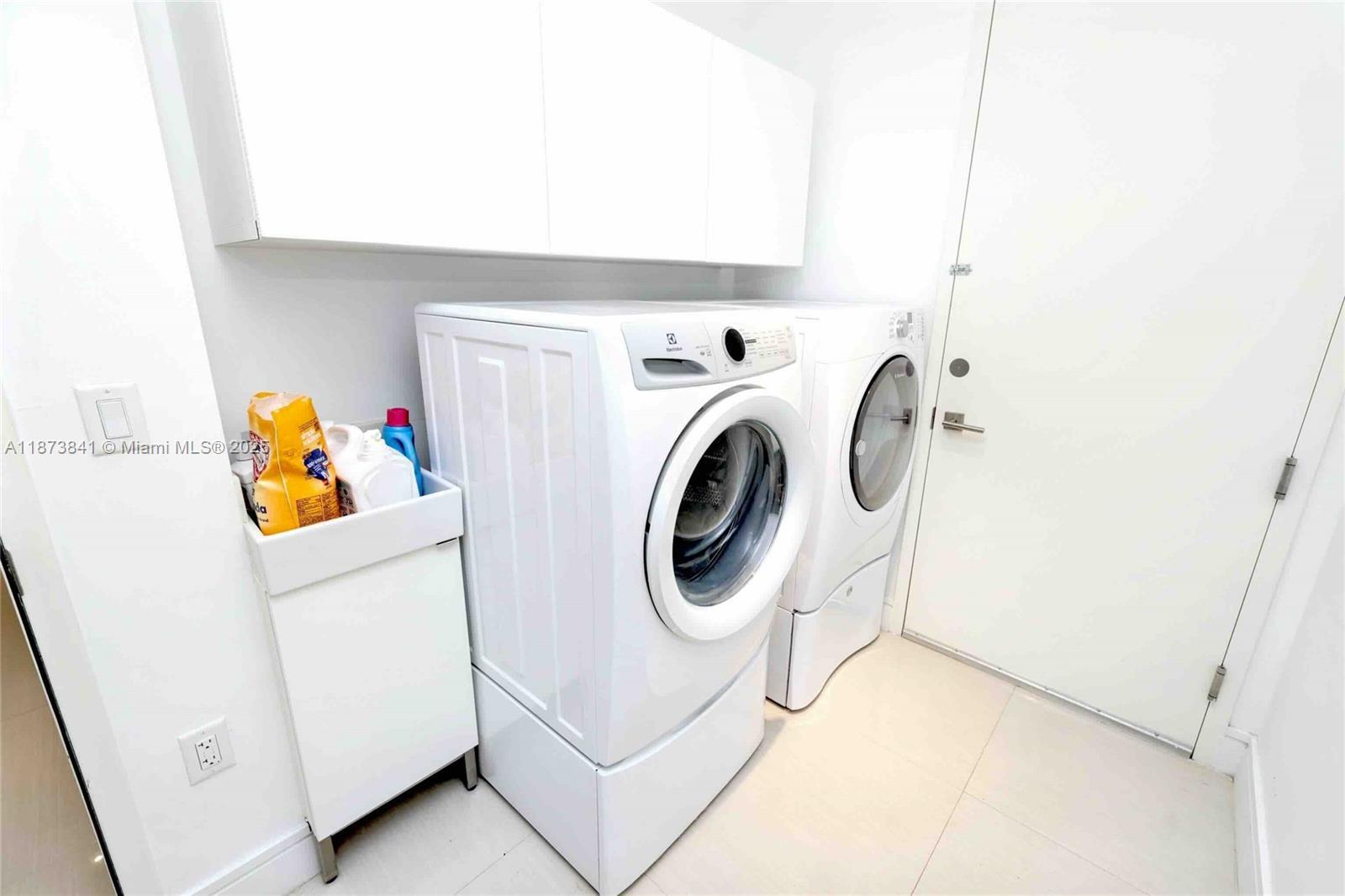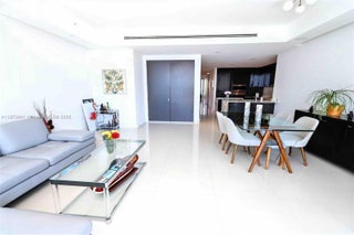 Experience modern elegance in this rarely lived-in residence with stunning water views. This spacious condo features a designer kitchen with marble countertops, waterfall island, high-end cabinetry, and premium appliances. Floor-to-ceiling impact windows bring abundant natural light, complemented by automated electric shades in every room for comfort and privacy. Bathrooms are enhanced with luxury electric bidets, and the walk-in closets have been fully upgraded with premium wood finishes. A unique floor-to-ceiling shoe closet offers stylish organization. Located on the quiet side of the building, the home ensures peace and tranquility. Enjoy expansive balconies for entertaining and resort-style amenities including pool, fitness center, and 24-hour concierge. Pet walking and house car.