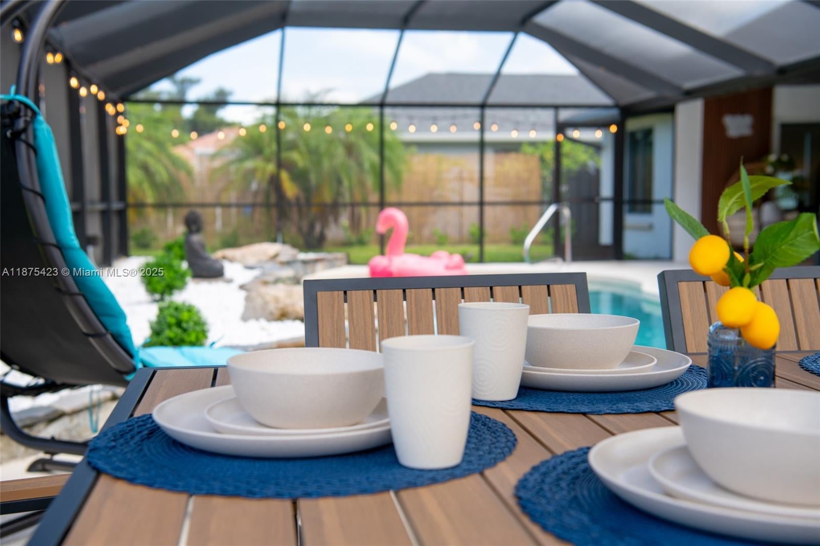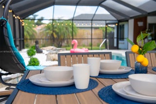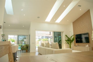 Fully remodeled 3BR/2BA pool home in Venice, FL. Features include open floor plan with high ceilings, skylights, and tile throughout. Modern kitchen offers induction cooktop, large island, sleek cabinetry, and premium finishes. Smart home upgrades include Lutron lighting, electric curtains, Sonos surround, and security system. Split plan provides privacy: oversized primary suite with seating area, dual walk-ins, and spa-like bath; 2 guest bedrooms share updated pool bath. Outdoor living boasts heated pool, built-in BBQ, dining area, fireplace, and fenced yard. Additional highlights: Tesla charger, whole-house water filtration, impact windows/doors, and new garage flooring. Minutes to the beach, shops, & dining.