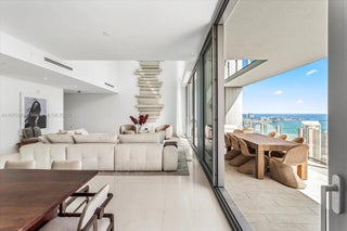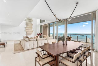 Sky Villa 5002: The highest & largest Sky residence at Aston Martin Miami. 1 of only 3 duplexes in the entire building. Double-height ceilings & windows offer unmatched turquoise water views and the iconic Brickell skyline. This nearly 5,000 total SqFt flow-through residence boasts 5 beds + den, 5.5 baths, 2 massive terraces, and includes a brand-new Aston Martin DBX. This isn’t just a residence; it’s a statement of opulence. AM offers over42,000 SF of world-class amenities: private marina; sky deck with pools; fitness center with spinning & boxing rooms; luxury spa with sauna, meditation room, beauty salon, & barbershop; two movie theaters; indoor pool; golf simulator; business center & more. Step outside to explore Downtown Miami & Brickell. Live in a rare masterpiece of luxury design.